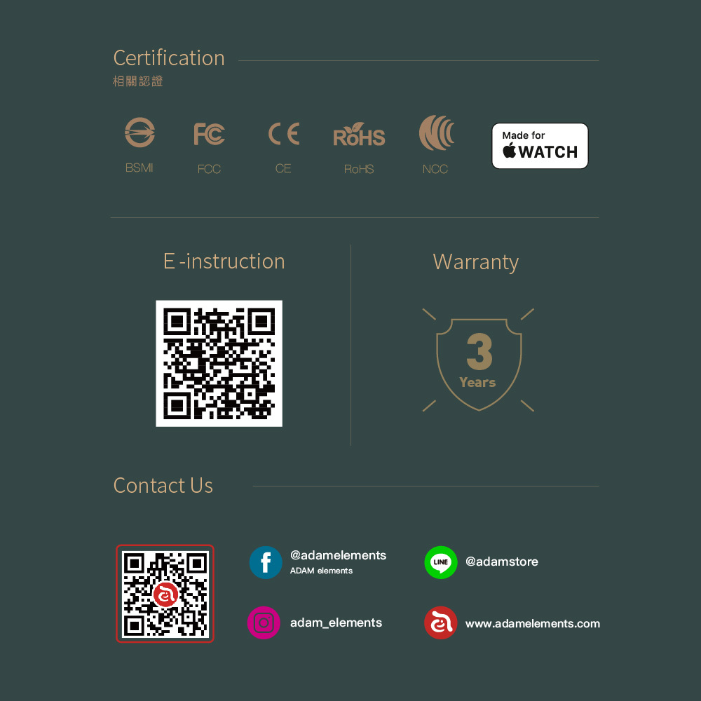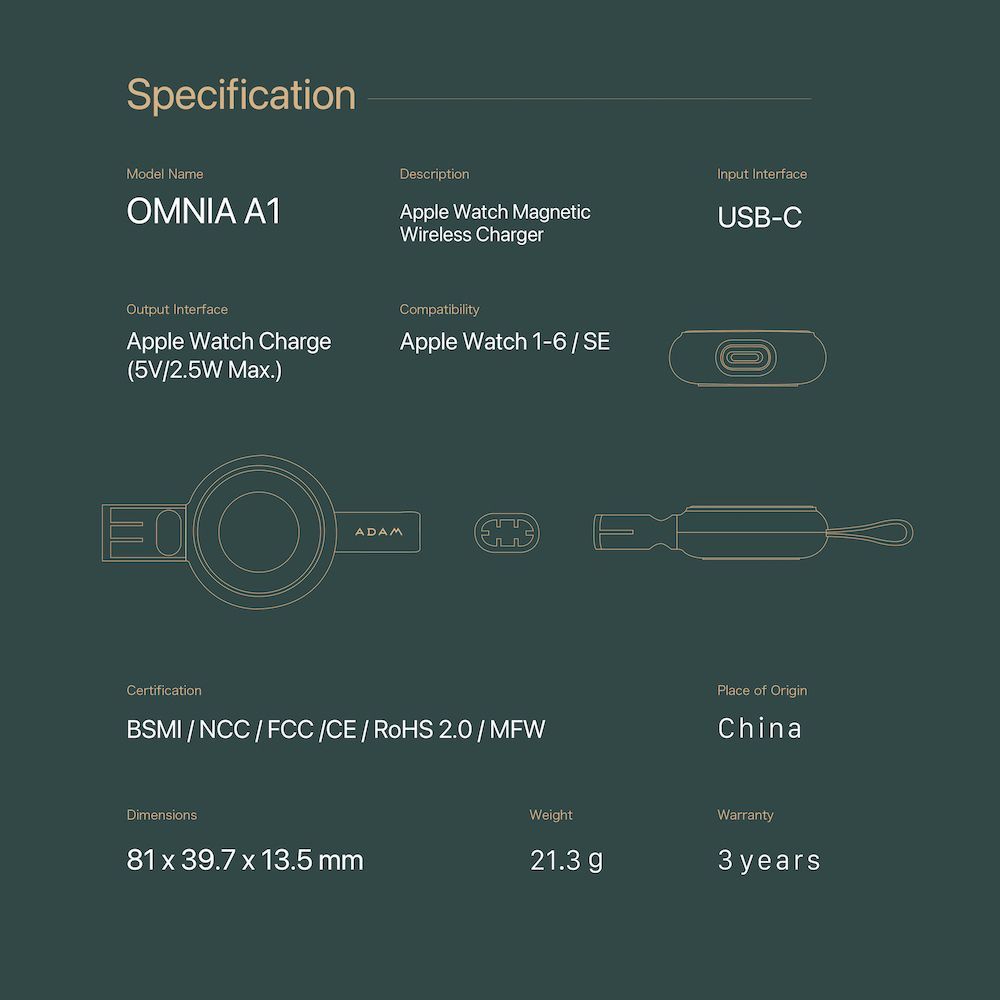 ・ Certified by an Apple Made for Watch (MFW) certificate, OMNIA A1 is compatible with all Apple Watch series.