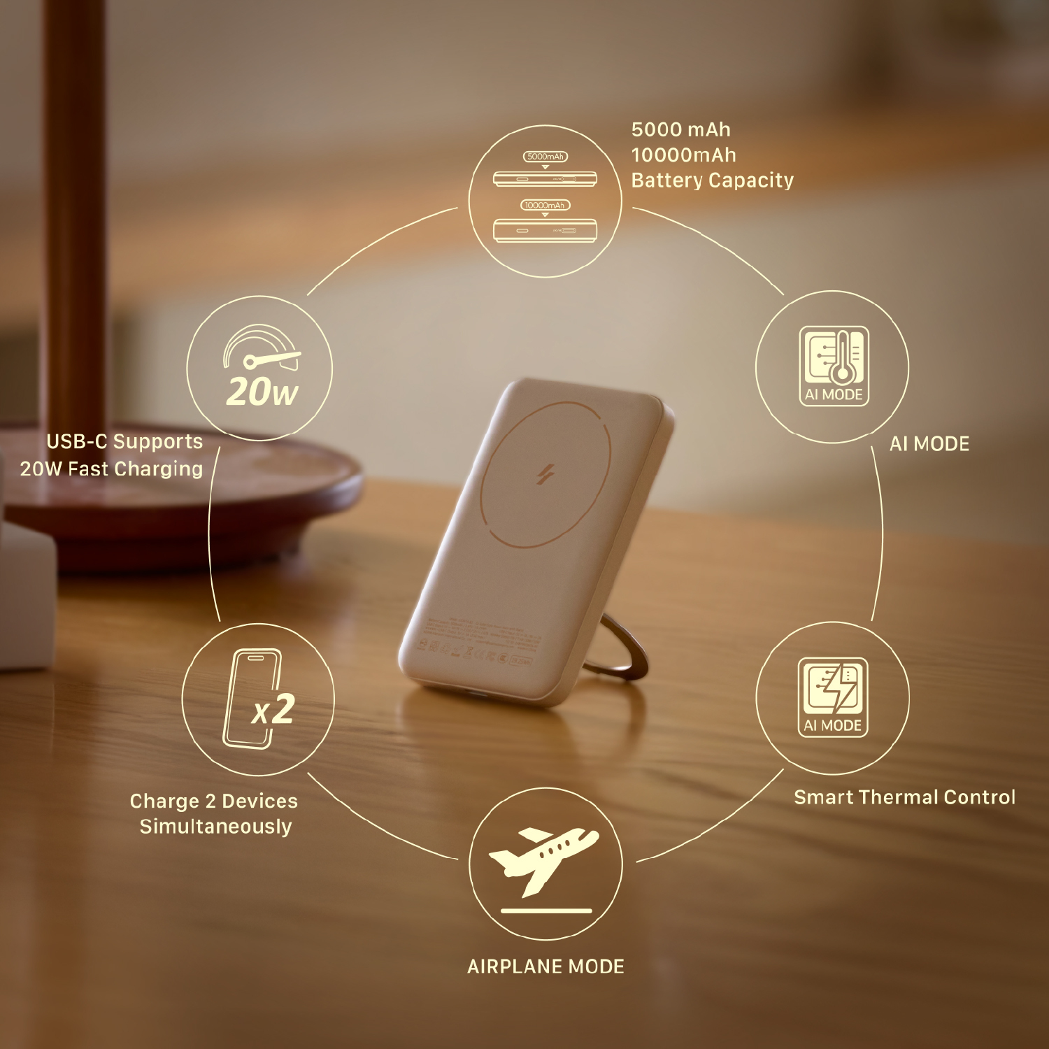 • Solid-state Magnetic Power Bank with Rotatable Stand