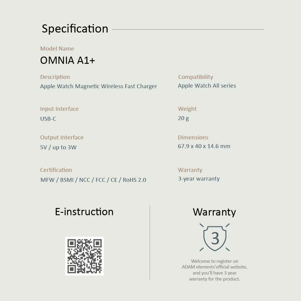 · The quality of OMNIA A1+ is certified with Apple’s Made for Watch (MFW) standard.