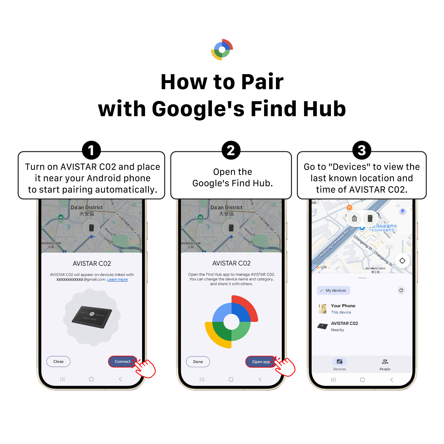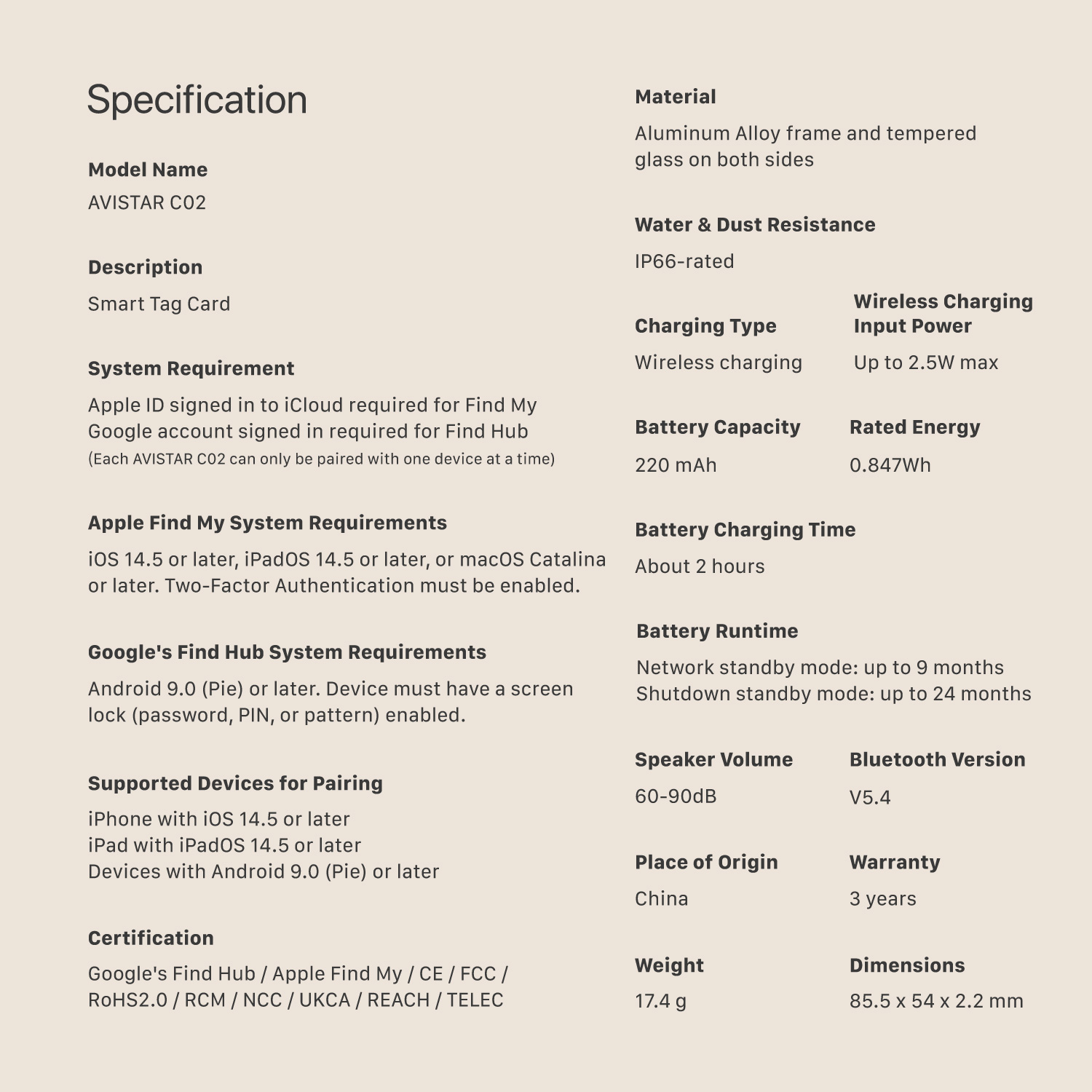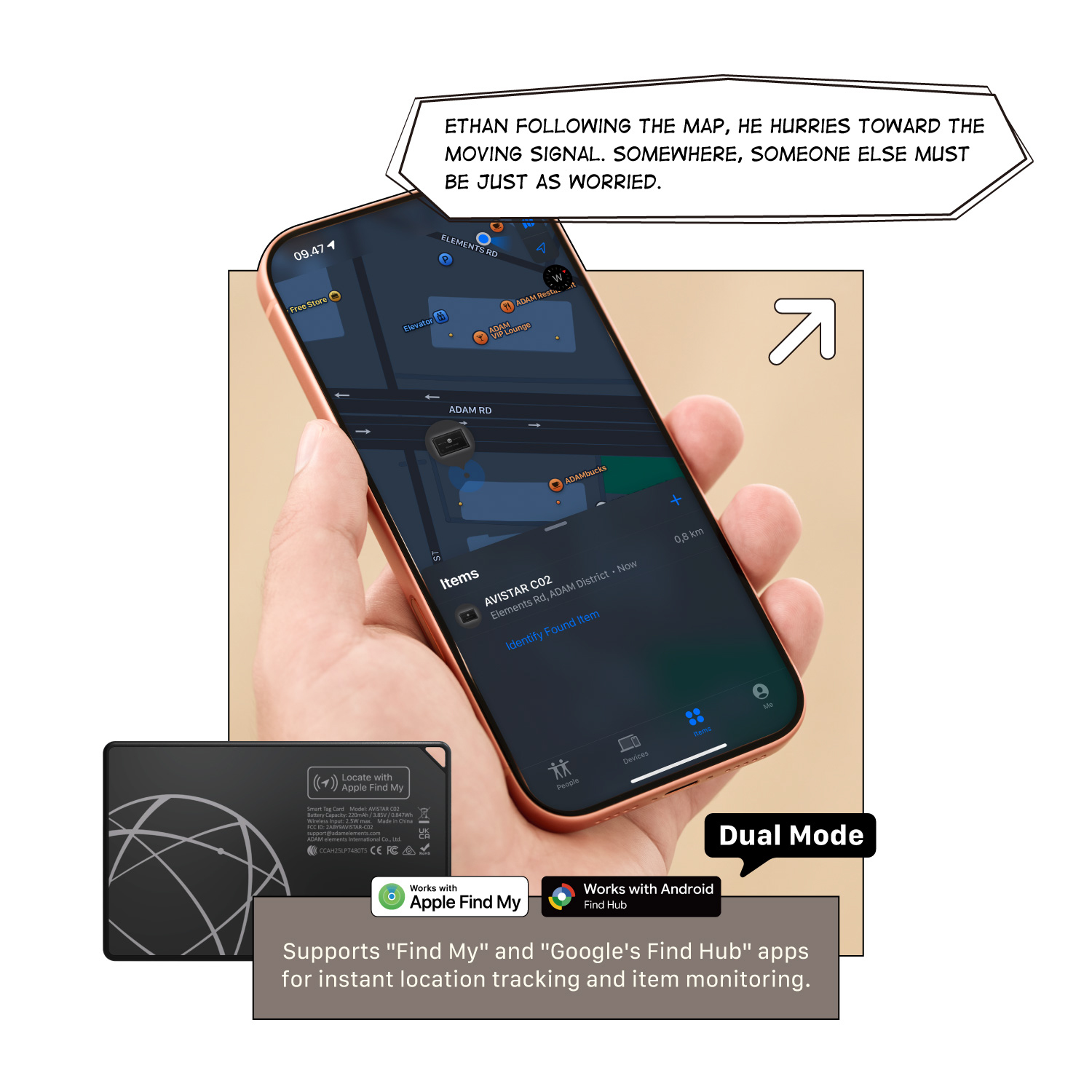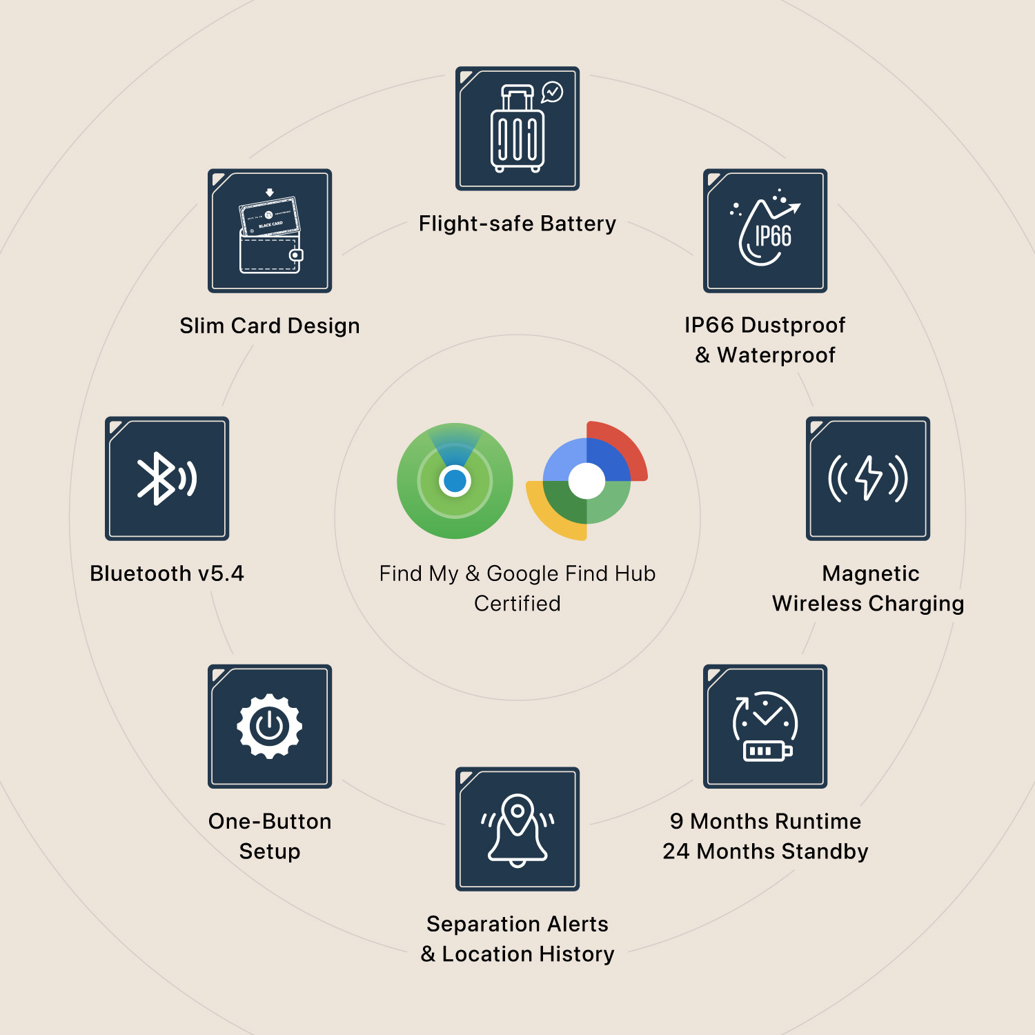 • Compatible with Apple Find My and Google‘s Find Hub, enabling global item location tracking through Apple and Google device networks