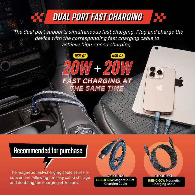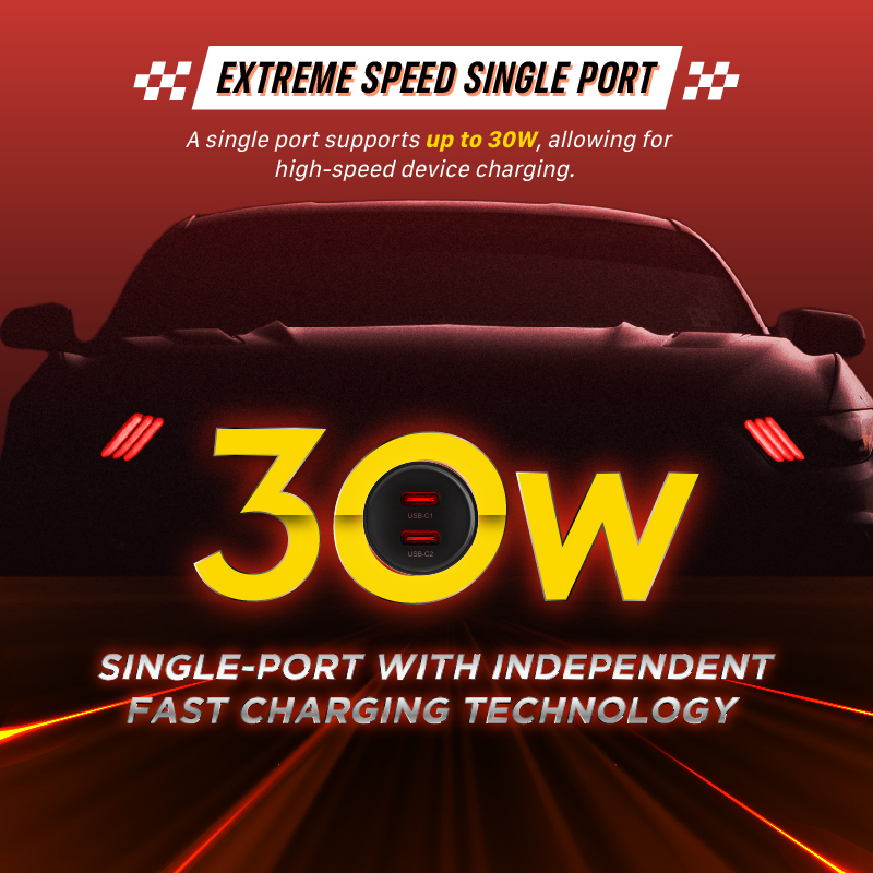 · Single port fast charge up to 30W / dual port up to 20W +20W, achieving fast charging.