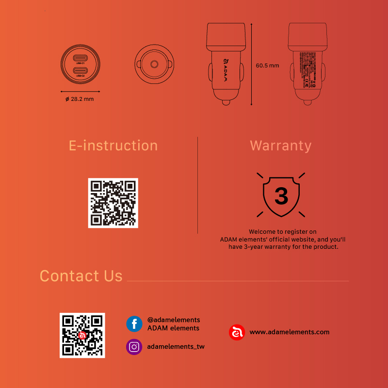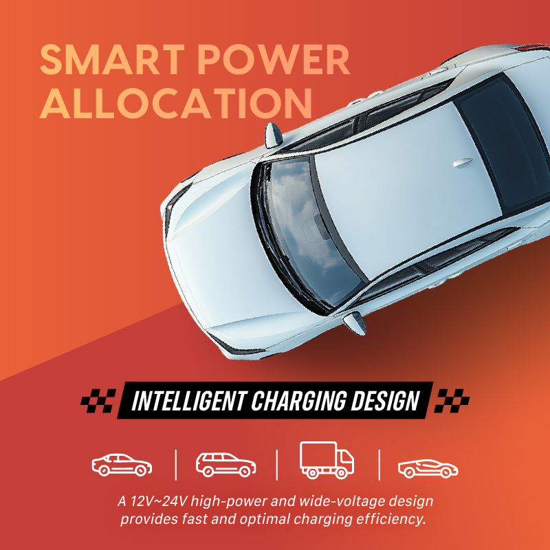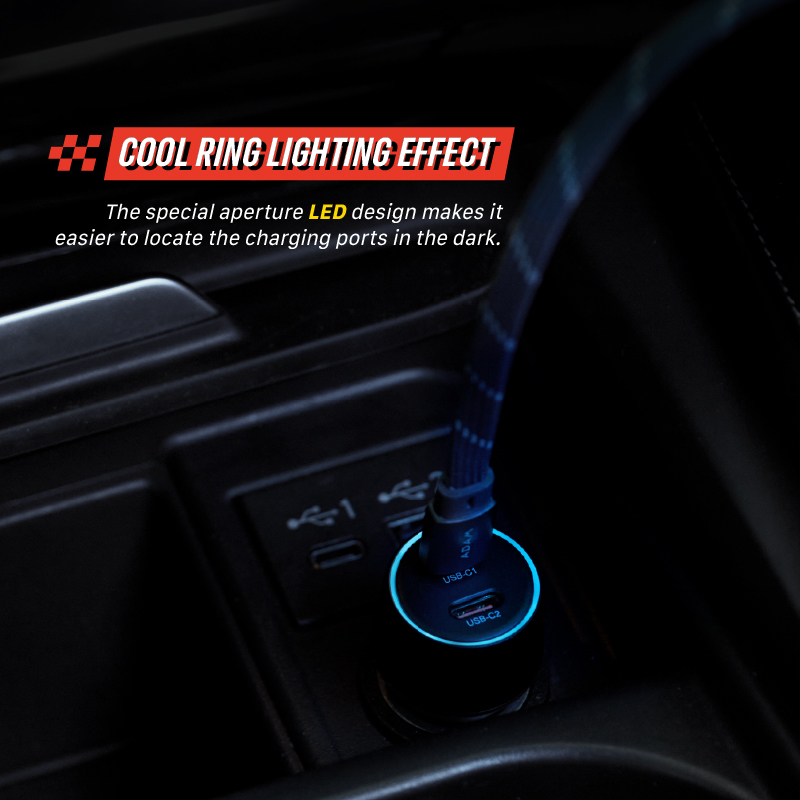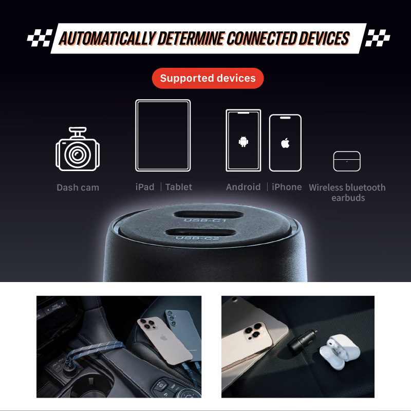 · Super fast dual USB-C port car charger with 12V~24V output, charge phones & tablets at the  same time while on the go.
