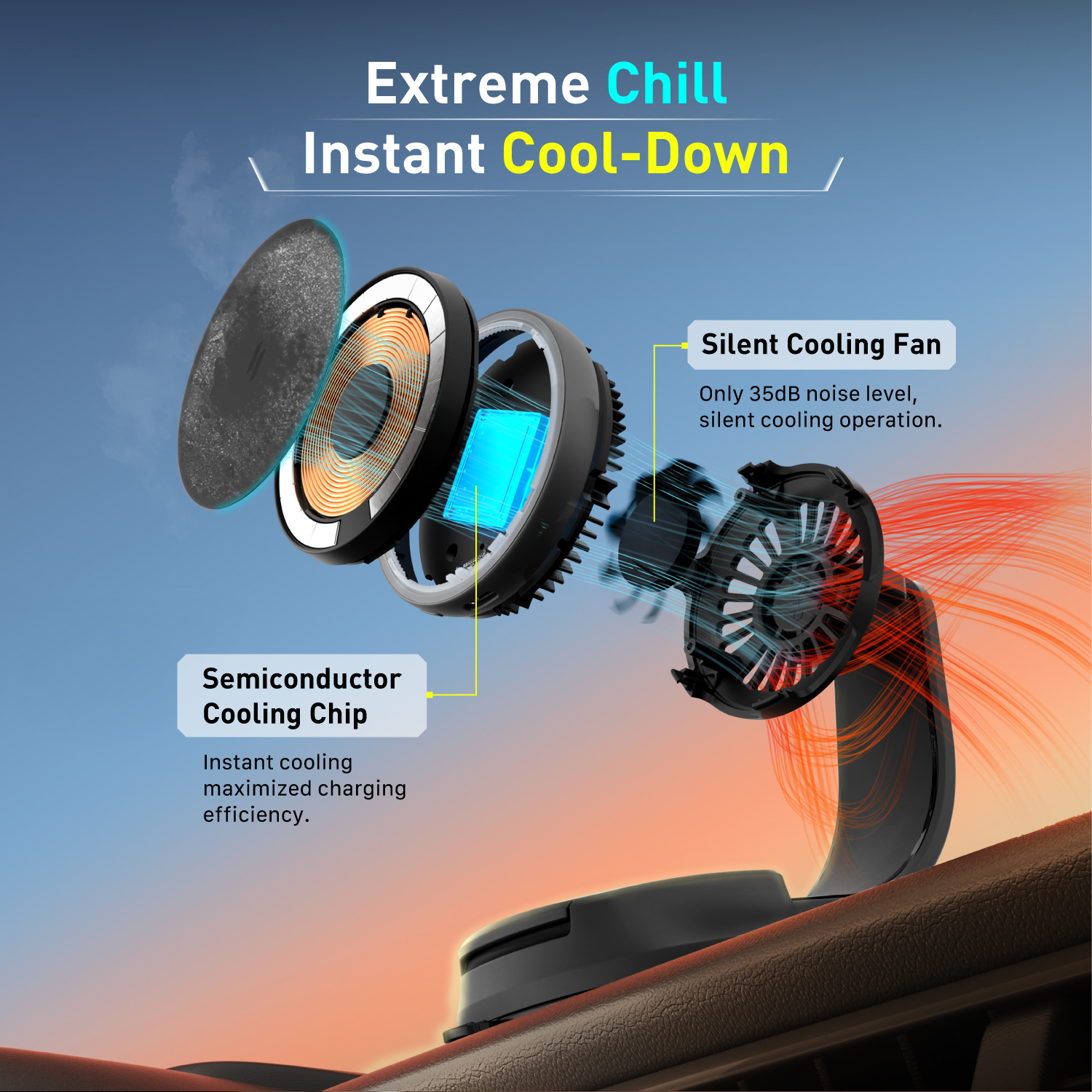 Advanced semiconductor refrigeration and a silent 35dB fan prevent thermal throttling, allowing your phone to charge at high speeds even during heavy navigation use.