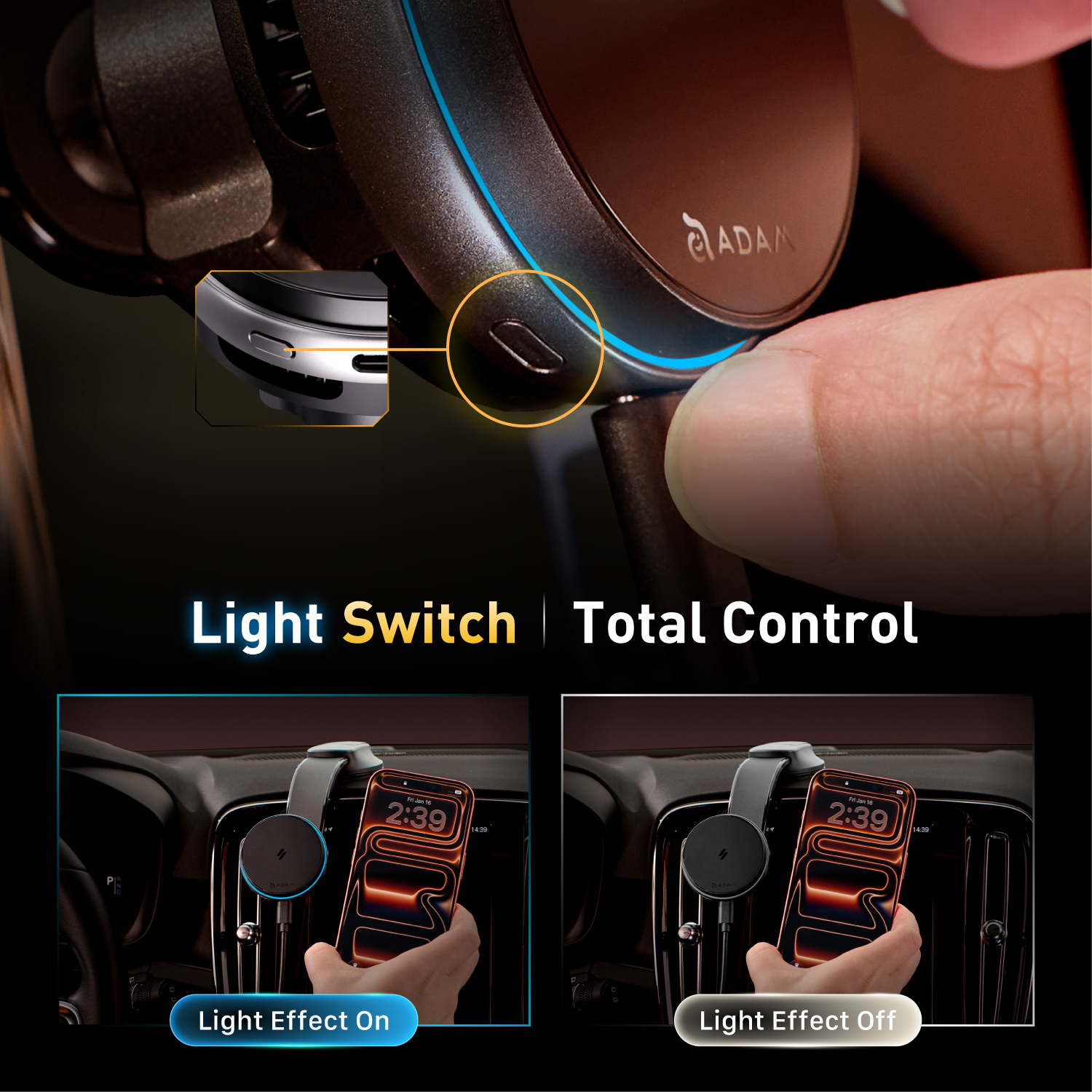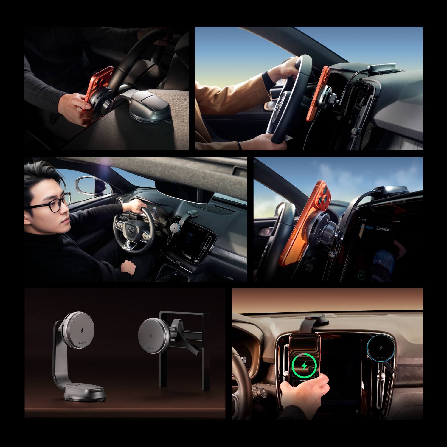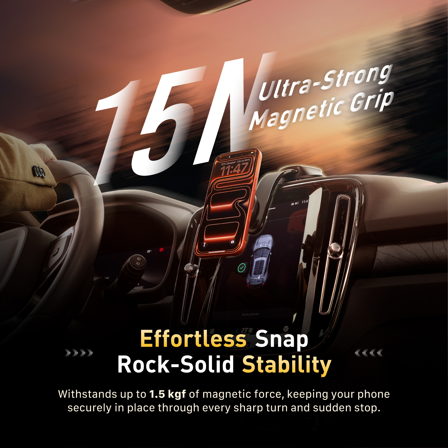 While CQ3 securely holds your phone with 1.5kg of force, the C40’s dual USB-C ports provide independent 20W+20W PD output to fast-charge a second phone or tablet simultaneously.
