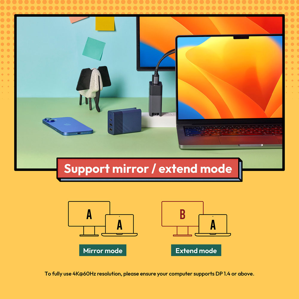• Supports high-quality 4K 60Hz video and audio output, easily mirror from your devices to all USB-C compatible screens.