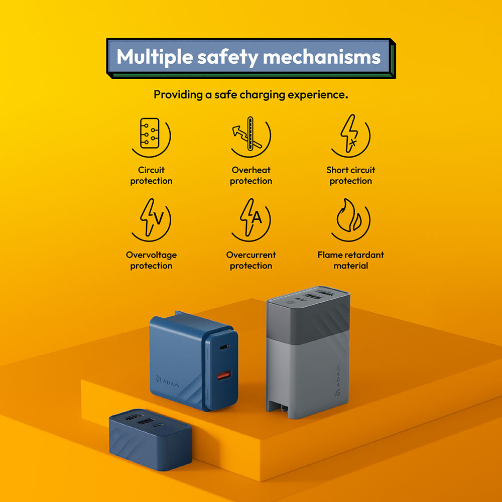 • Overcharging, overheating, and short circuit protection ensure safe charging.