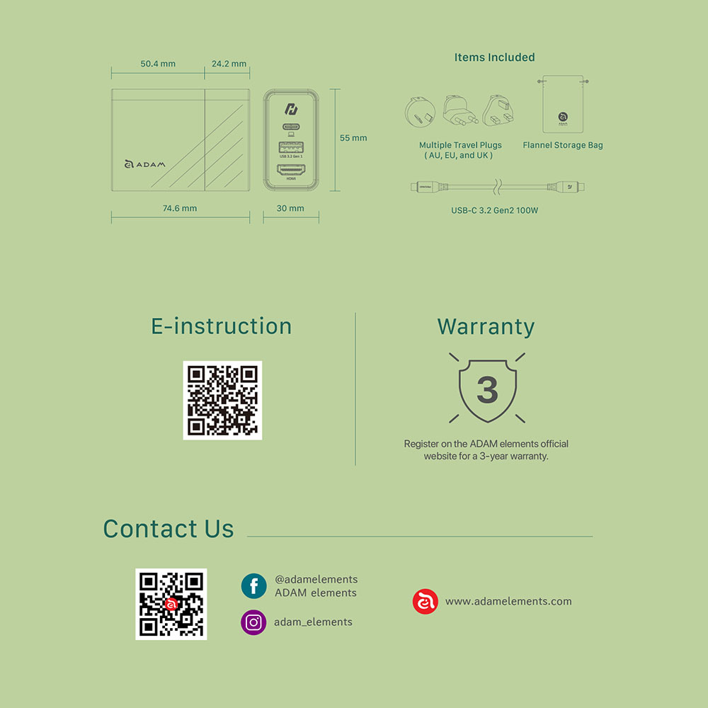 • Supports Max 100W(20V, 5A) charging output and up to USB 3.1 Gen 2 10Gbps data sync.