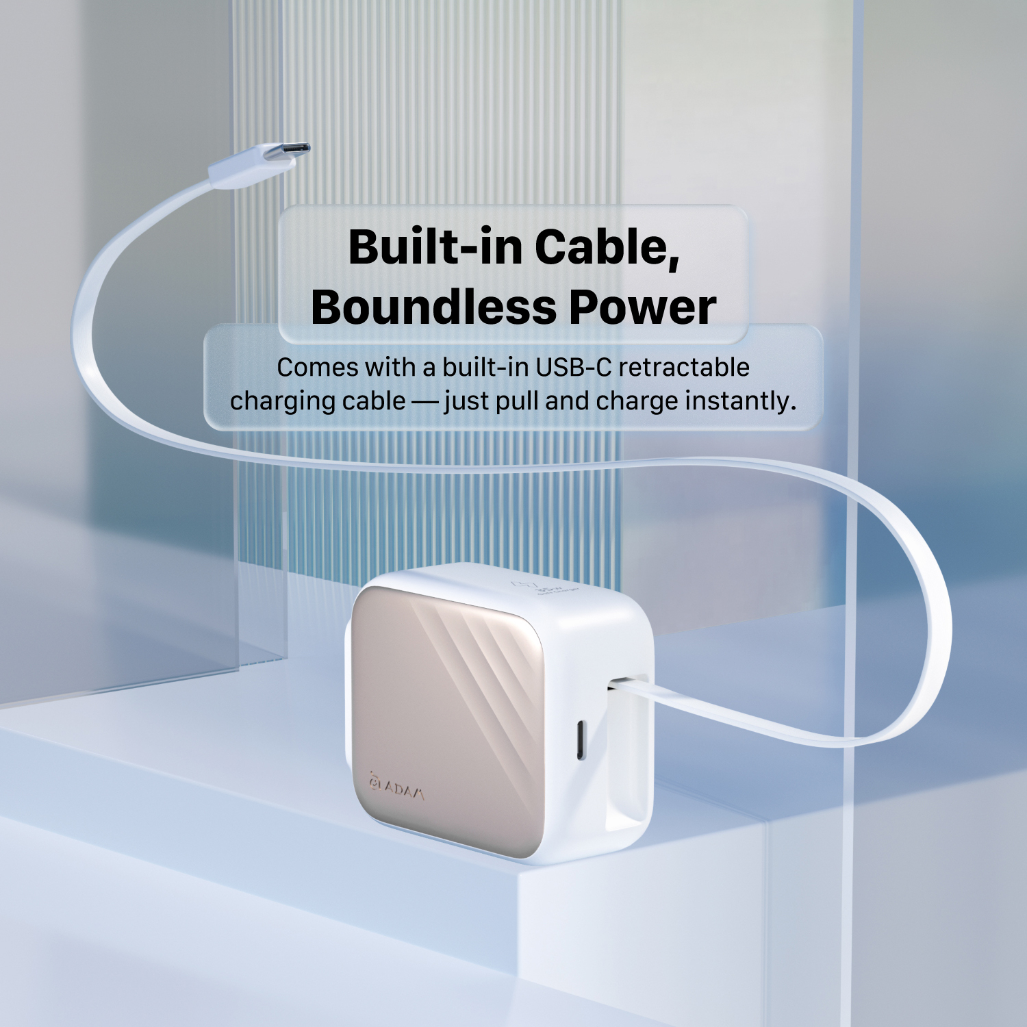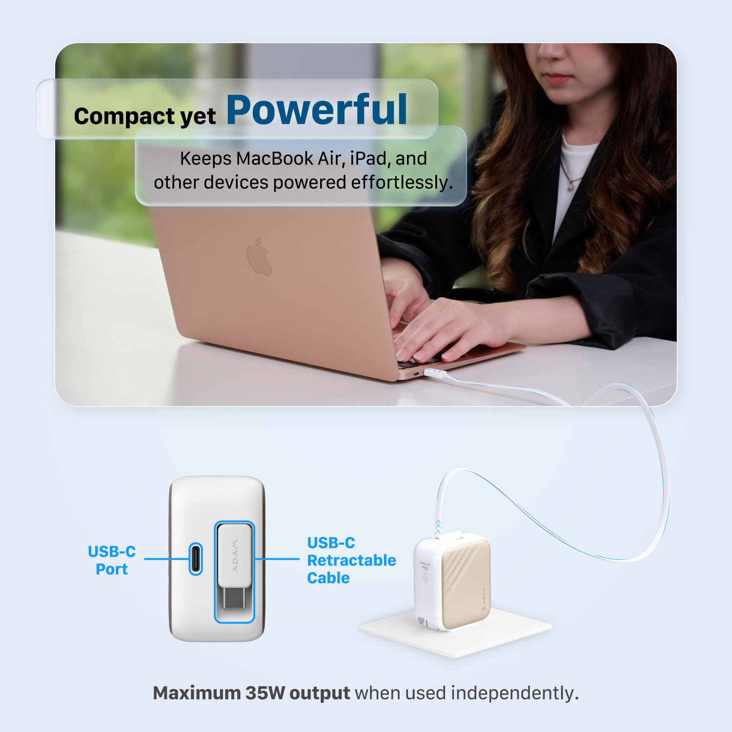 • Built-in 90 cm retractable USB-C cable reduces the need to carry an extra cable—perfect for on-the-go convenience