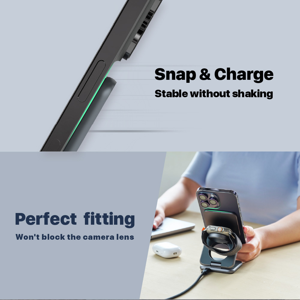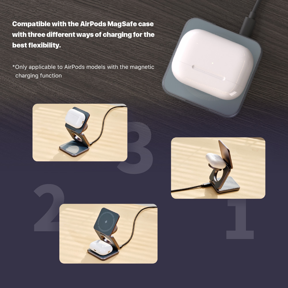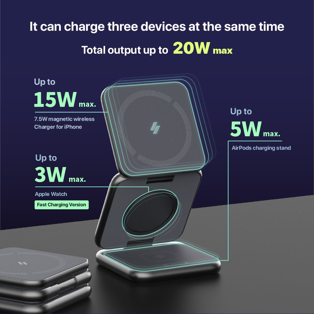 The stylish, practical three-in-one charging station easily replenishes your iPhone, Apple Watch, and AirPods in one shot.