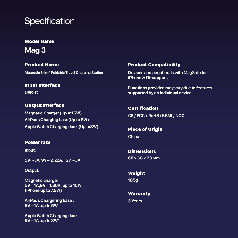 .Complies with Power Delivery (PD 3.0), Quick Charge (QC 3.0) and PPS fast charge protocols: 5V ⎓ 3A / 9V ⎓ 3A / 11V ⎓ 3A / 12V ⎓ 2.5A / 15V ⎓ 2A / 20V ⎓ 1.5A