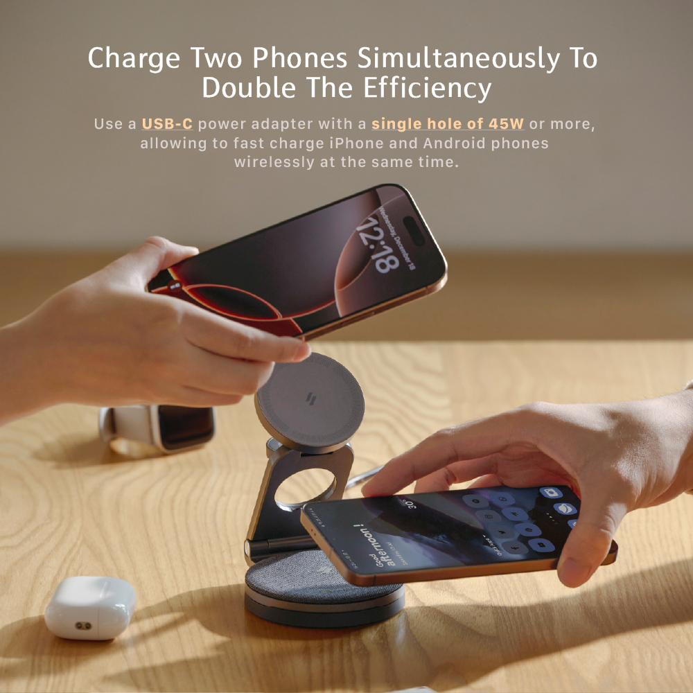 • Unique dual 15W charging design allows for fast charging of two phones simultaneously. Whether it's iPhone or Android devices, both are supported for an efficient charging experience.