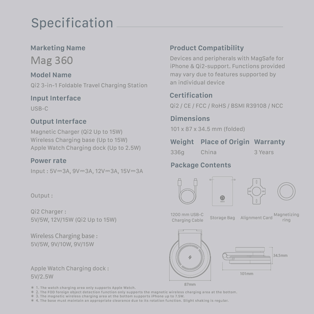 Mag 360 Qi2 3-in-1 Foldable Travel Charging Station