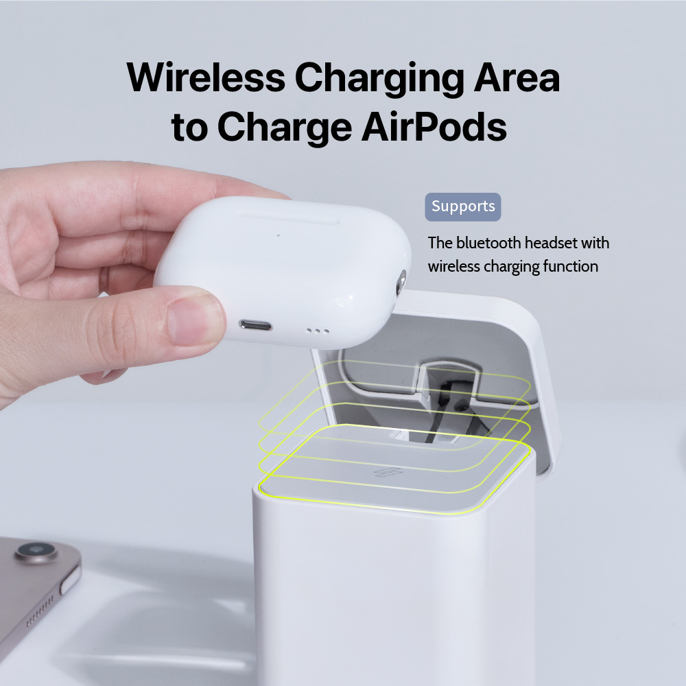 The small, compact size takes very little space for tidy desk space and freedom from tangling cords, while the anti-skid base offers stable wired or wireless charging.