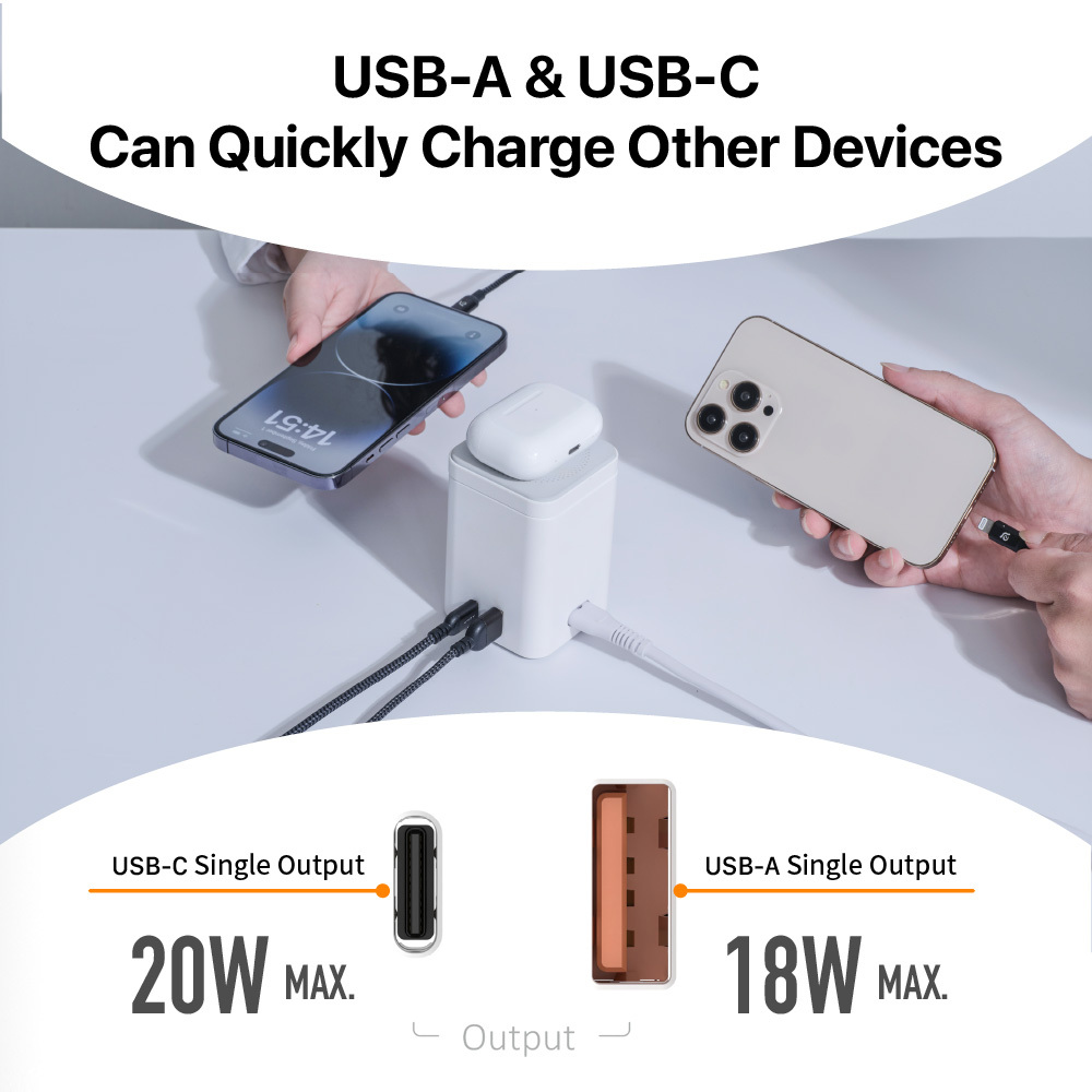 • The unique AC charging cable solves the insufficient charging wattage problem to offer an uninterrupted power supply. Charge your phone and laptop on the desk while you work or play for better efficiency and a neat space at home or office.