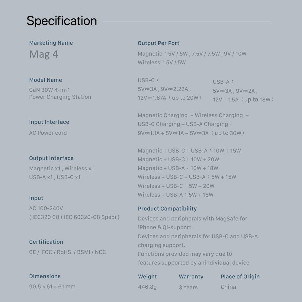 • Featuring travel-friendly foldable prongs, the Mag 4 is compatible with 100-240V universal voltage and has overcurrent and short-circuit protections for your safety.