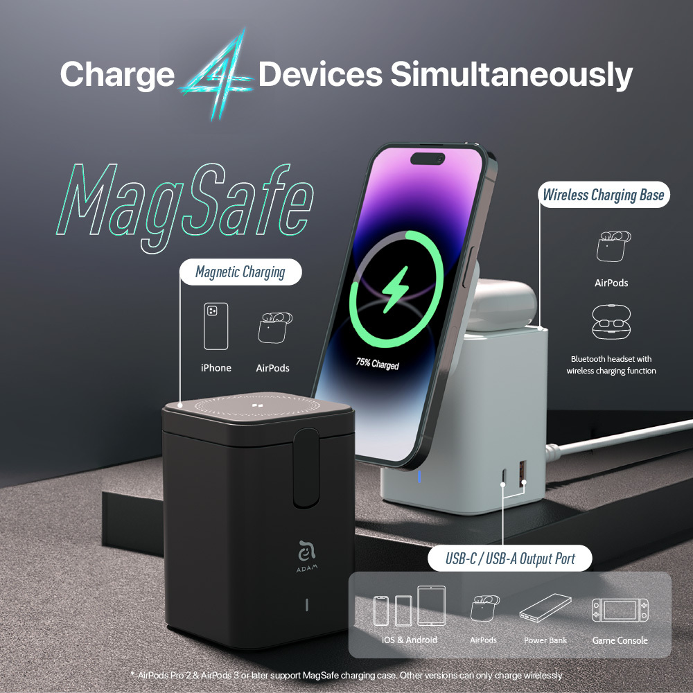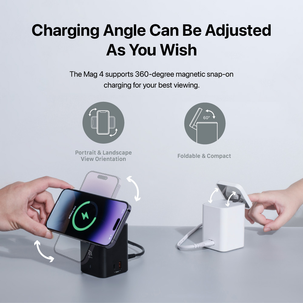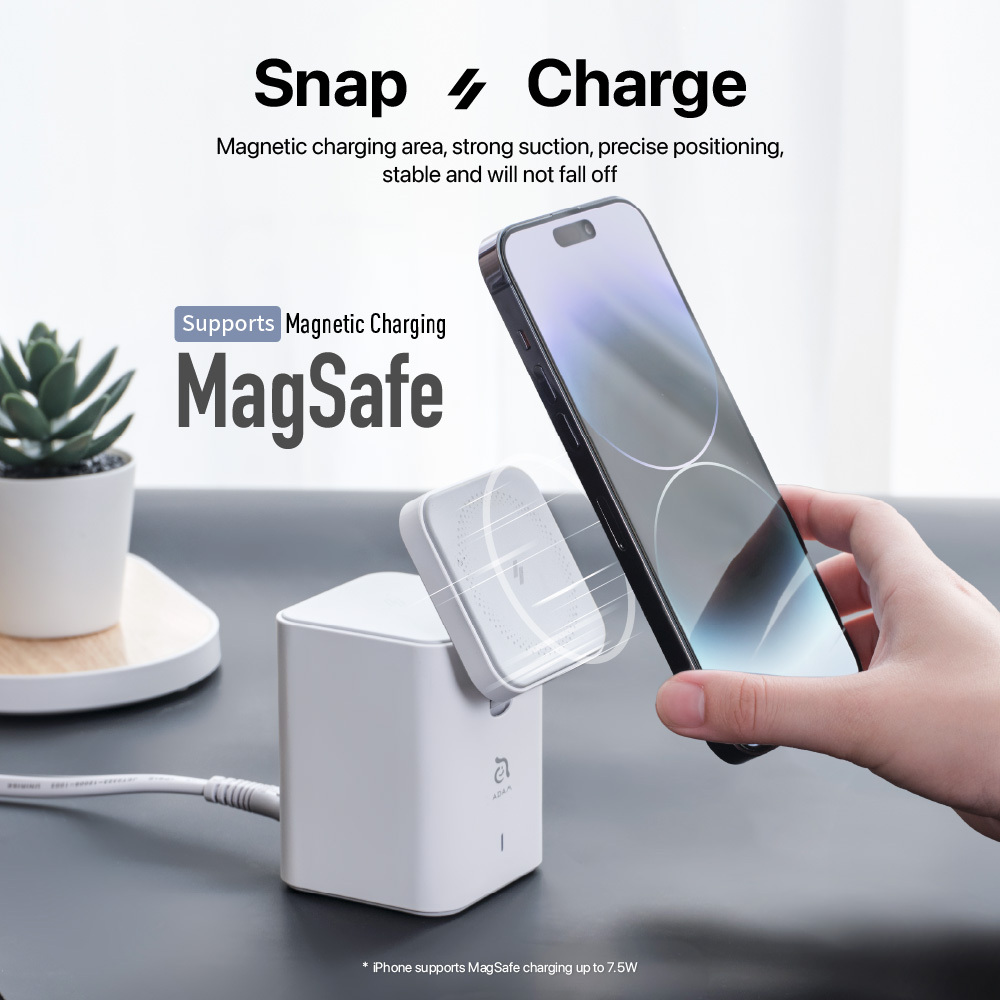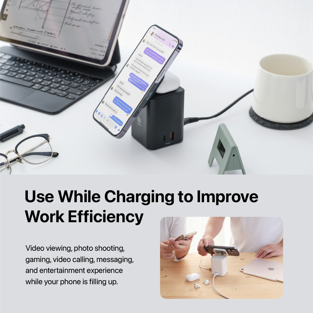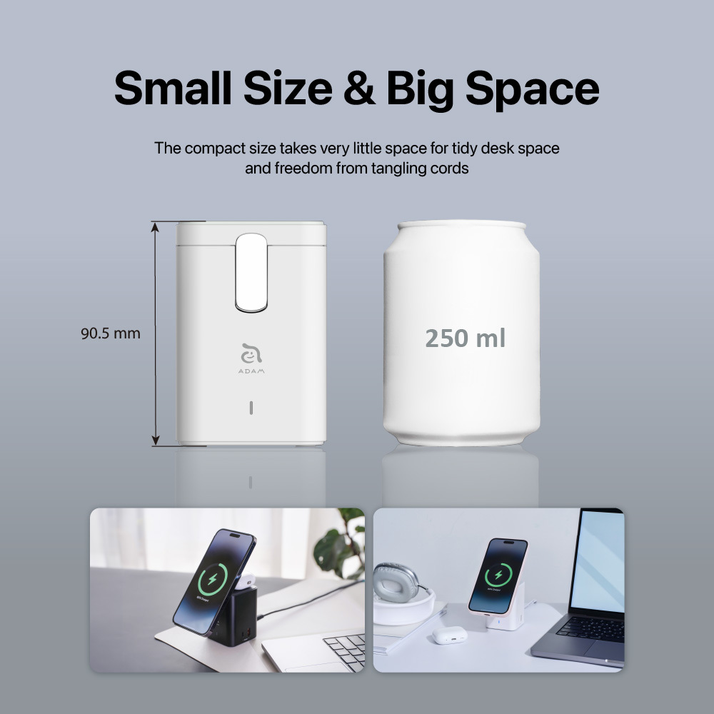 The small, compact size takes very little space for tidy desk space and freedom from tangling cords, while the anti-skid base offers stable wired or wireless charging.