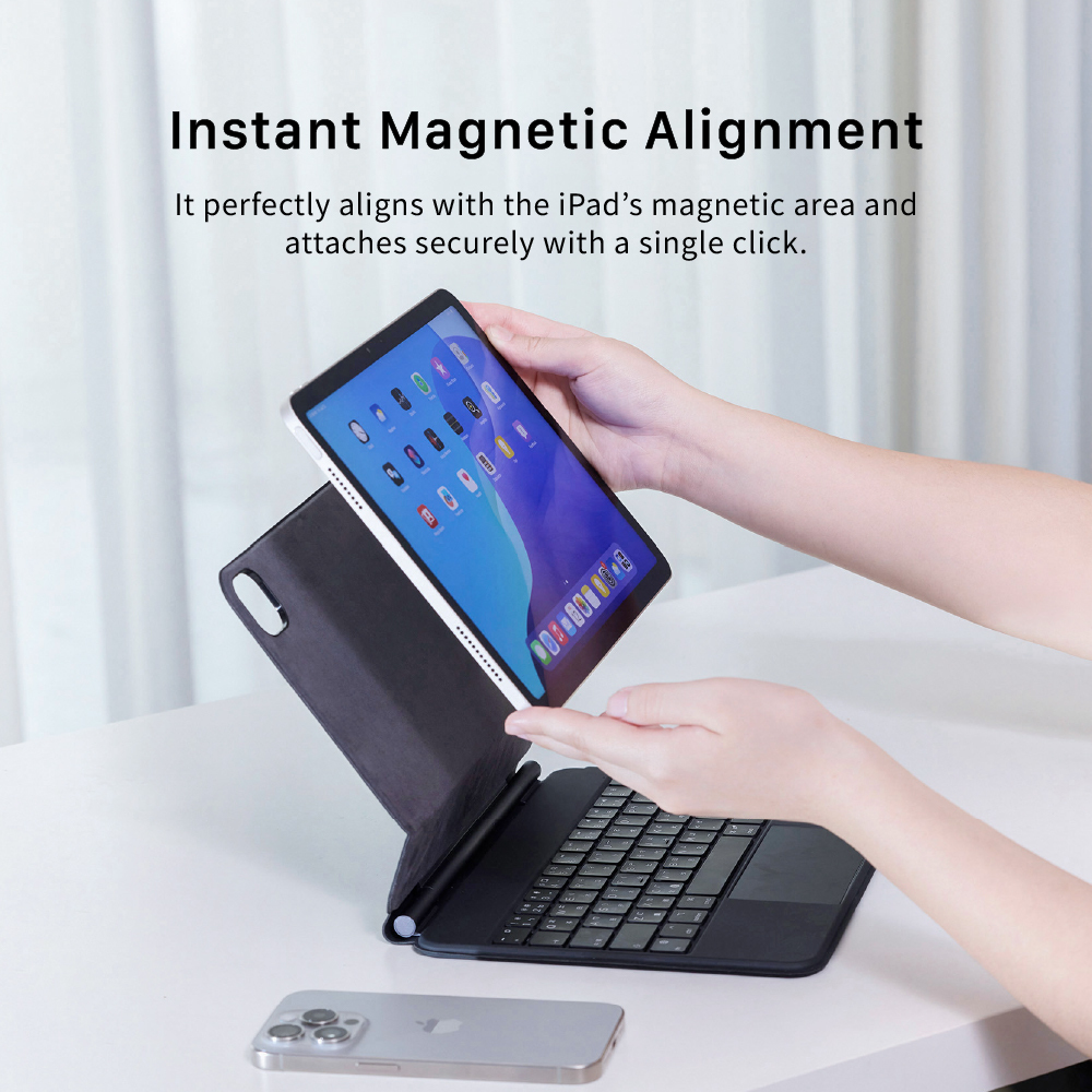 • Utilizing up to 50 pieces of N48H magnets for alignment, it effortlessly attaches to the iPad.