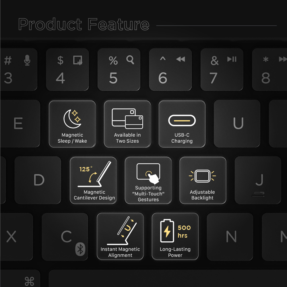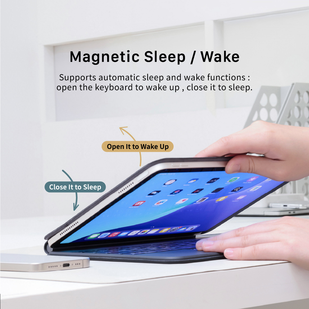 • Supporting Apple's native magnetic sleep-wake function, it wakes up when the keyboard is opened and sleeps when closed.