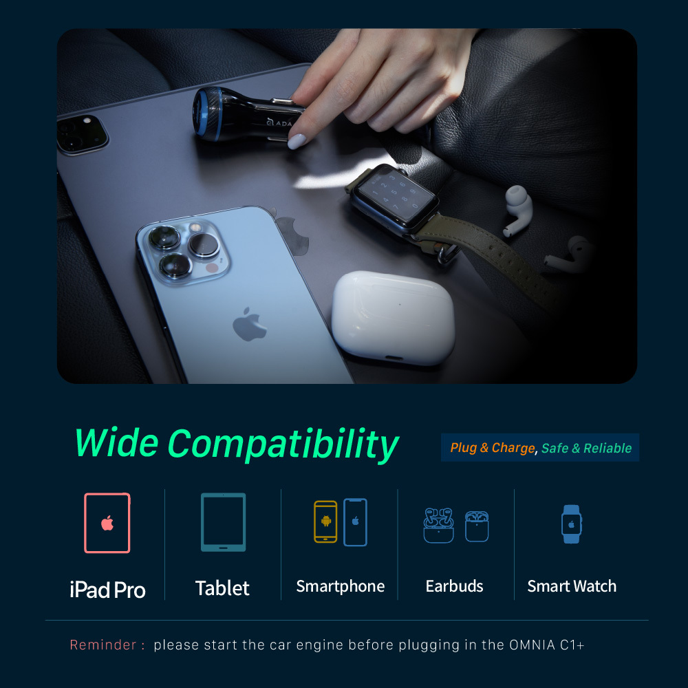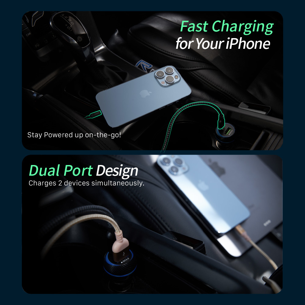 .Super Fast Dual port Car charger, stay powered even while on the go.