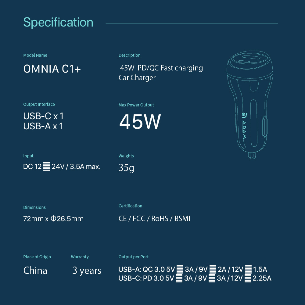 .Total power output up to 45W, with a Power Delivery (PD 3.0) and Quick Charge (QC 3.0) support.