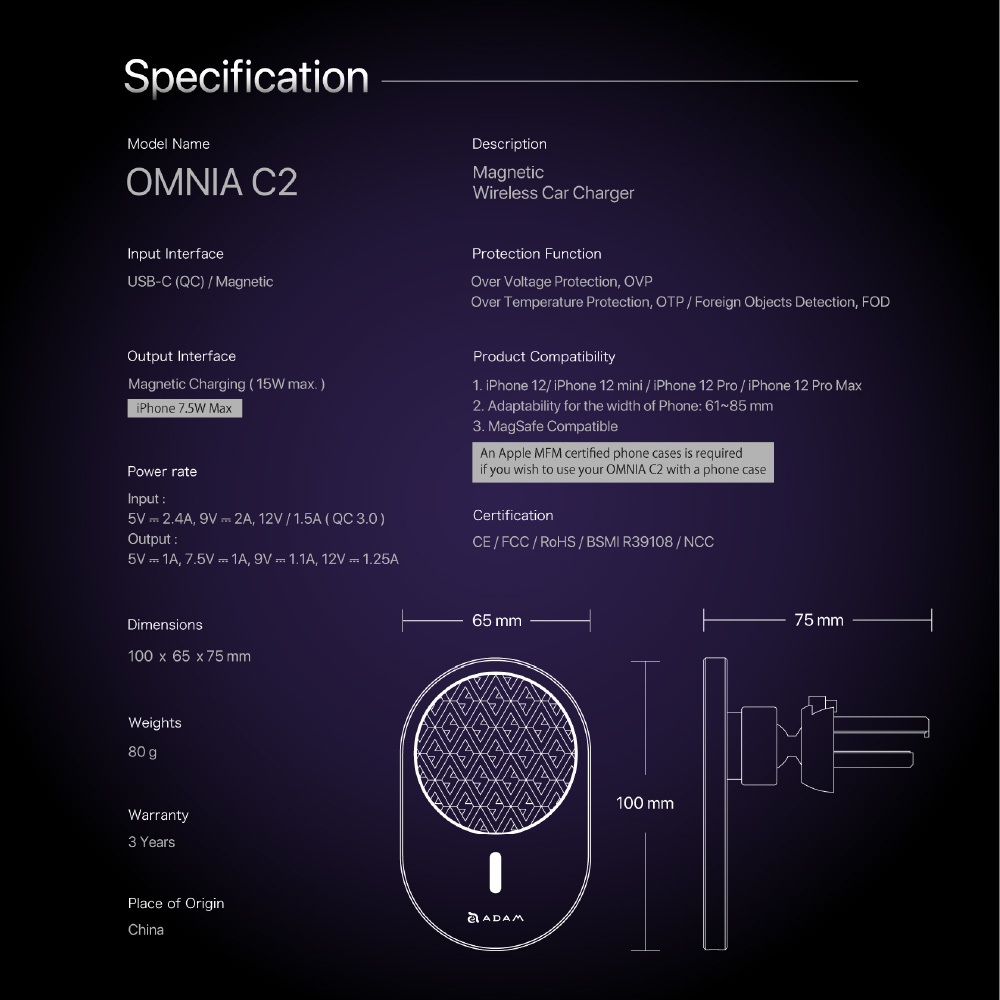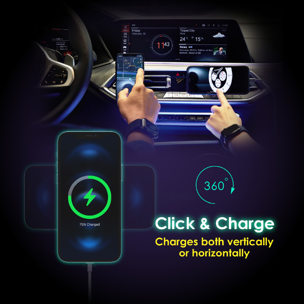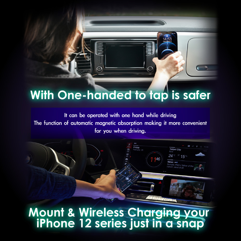 ・ Leveraging the newest Magnetic Snap & Charge technology, wirelessly charge your latest iPhone 12 / 13 / 14with MagSafe, all in a simple click.