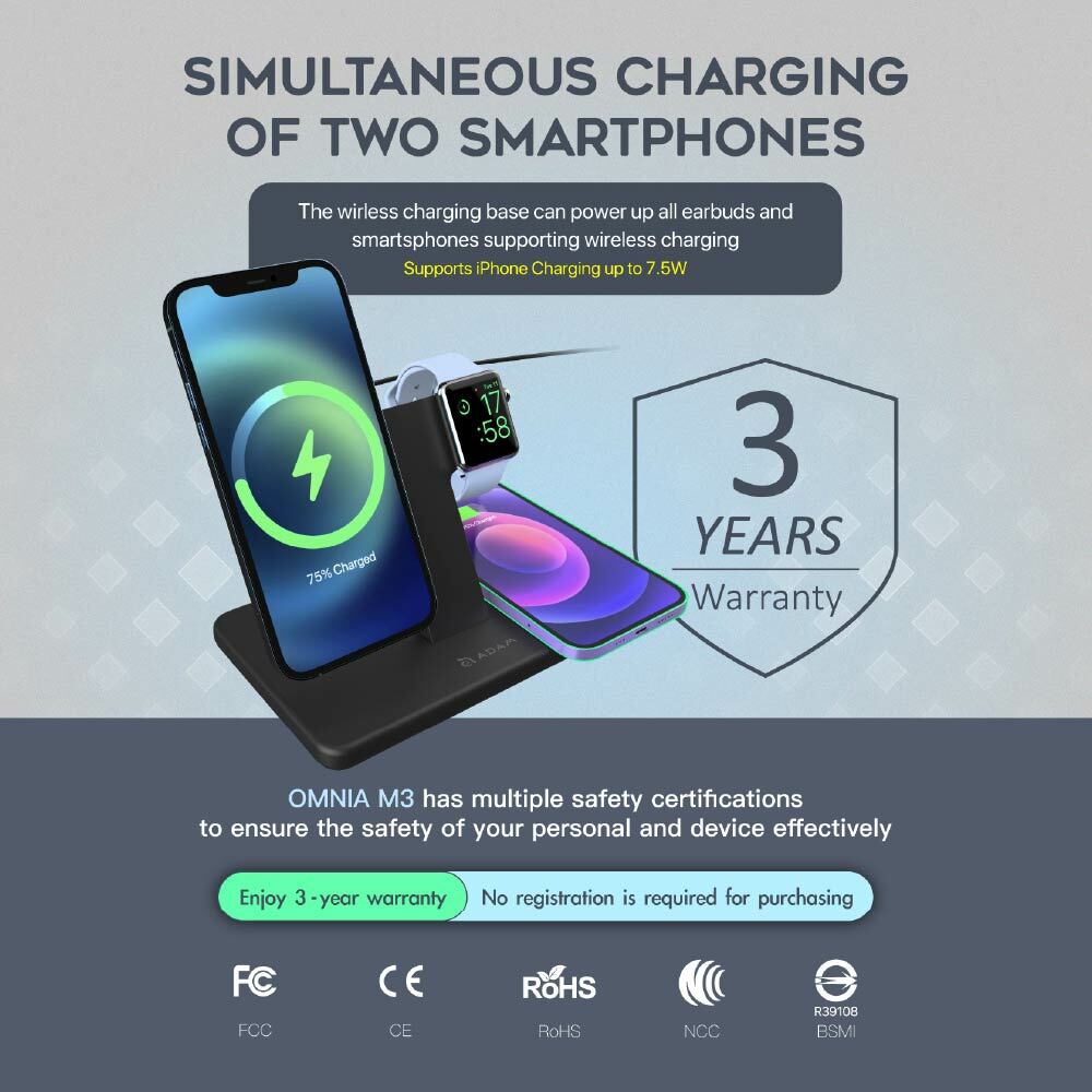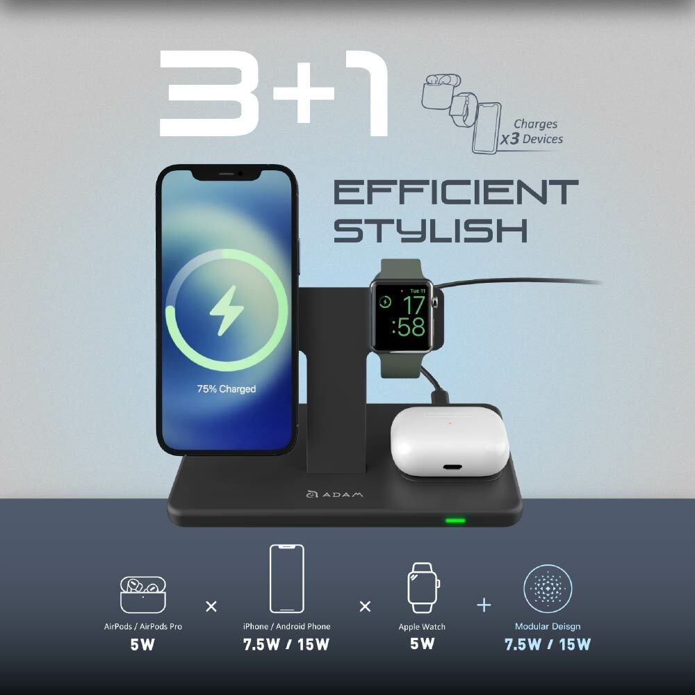 .With stylish and functional 3-in-1 design, charge your latest iPhone 12 / 13 series along with your AirPods and Apple Watch at the same time.