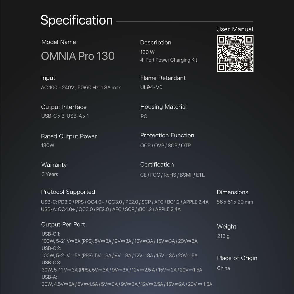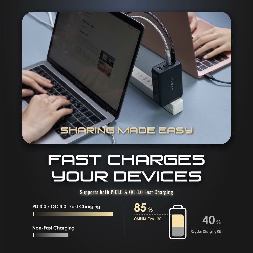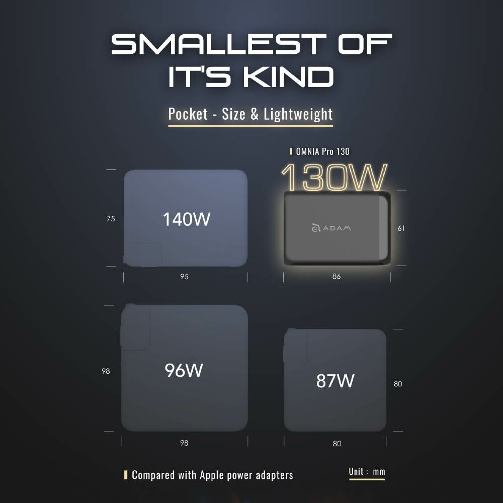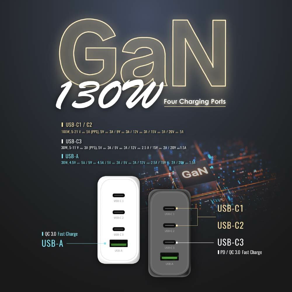 .Powered by the revolutionary GaN technology that packs 130W charging power in just a palm sized adapter.