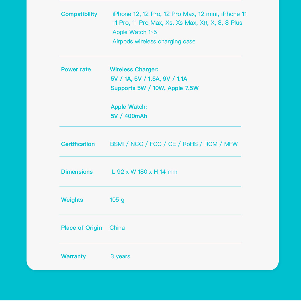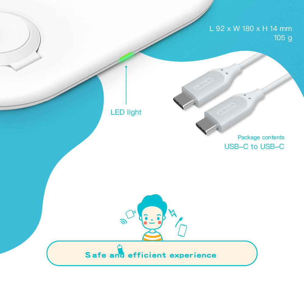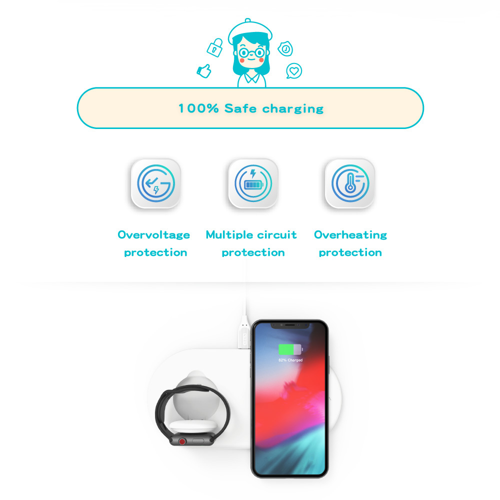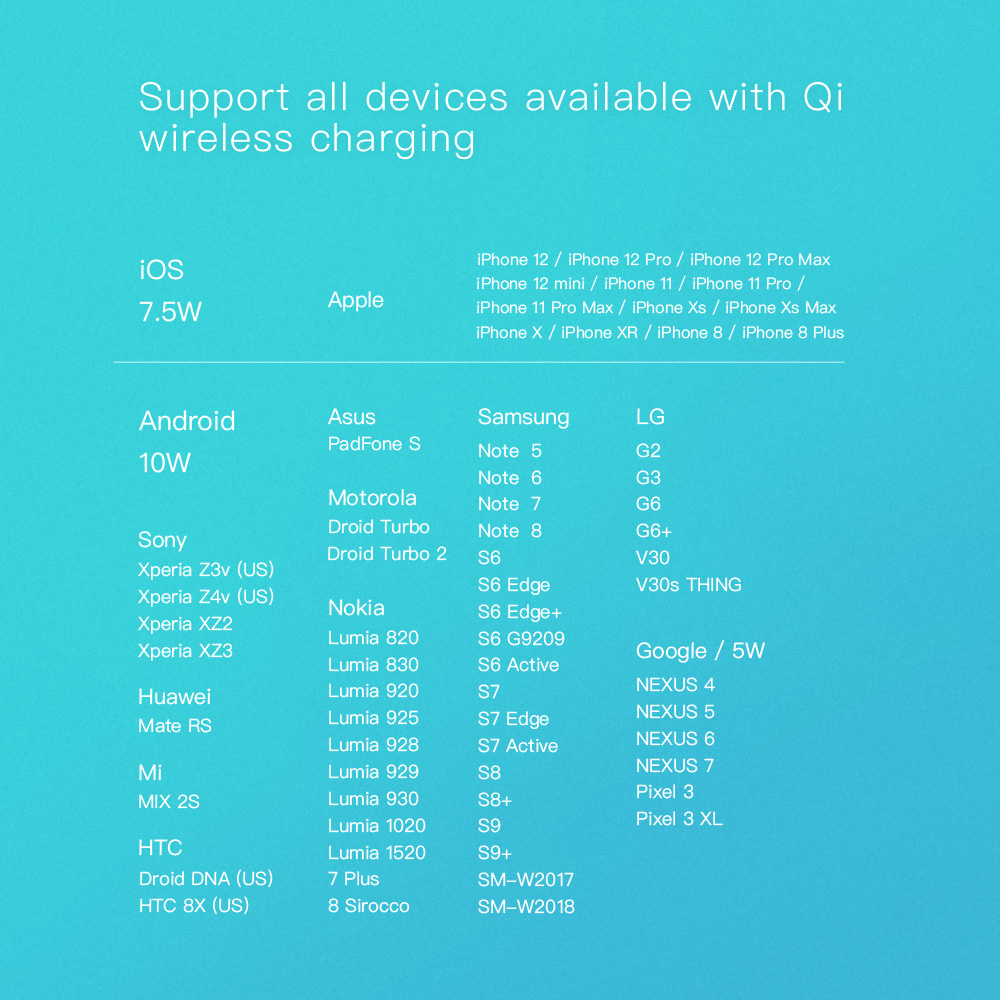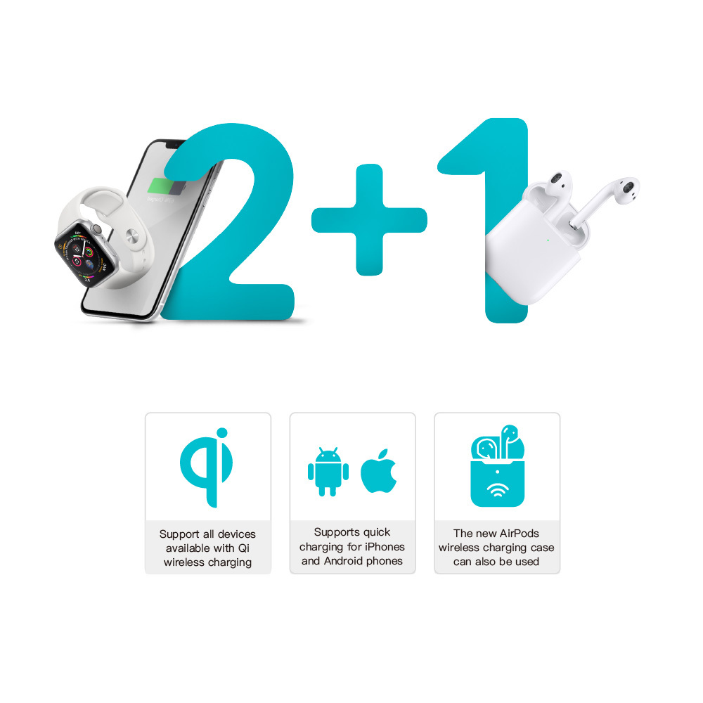 ・Dual Fast Wireless Charger, perfect for Apple products and other Qi-compatible devices