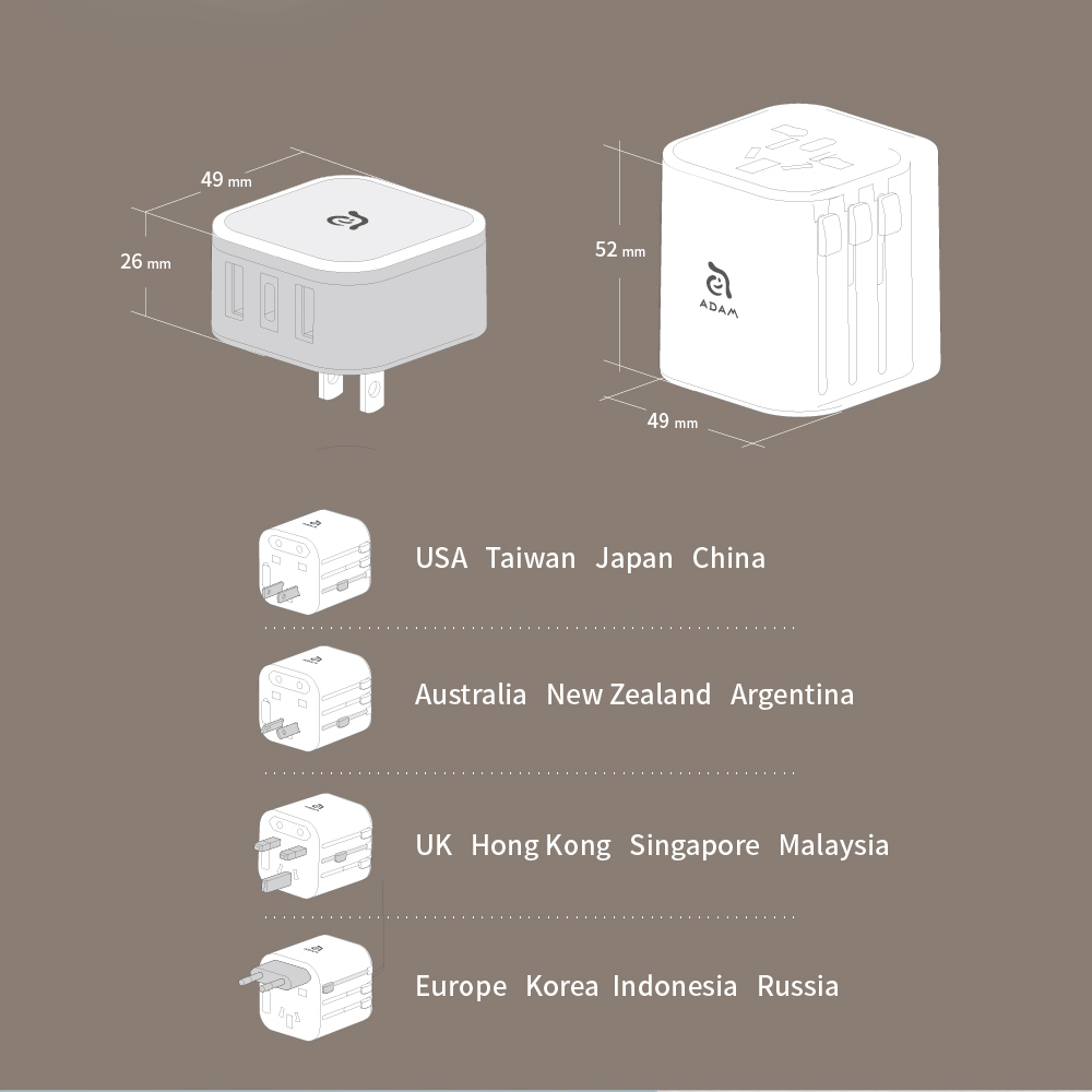 【 All-in-one US/UK/EU/AU adapter 】