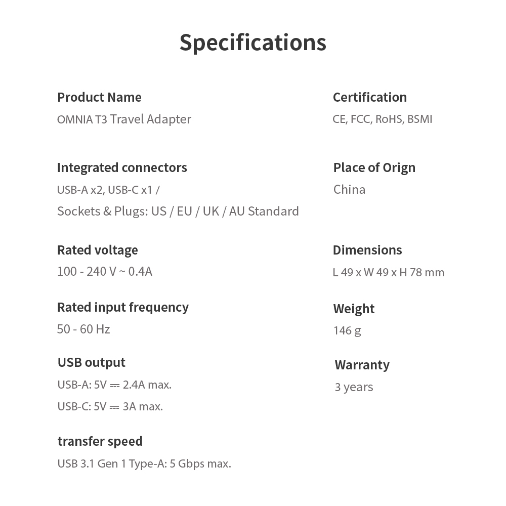 OMNIA T3 Universal Travel Adapter