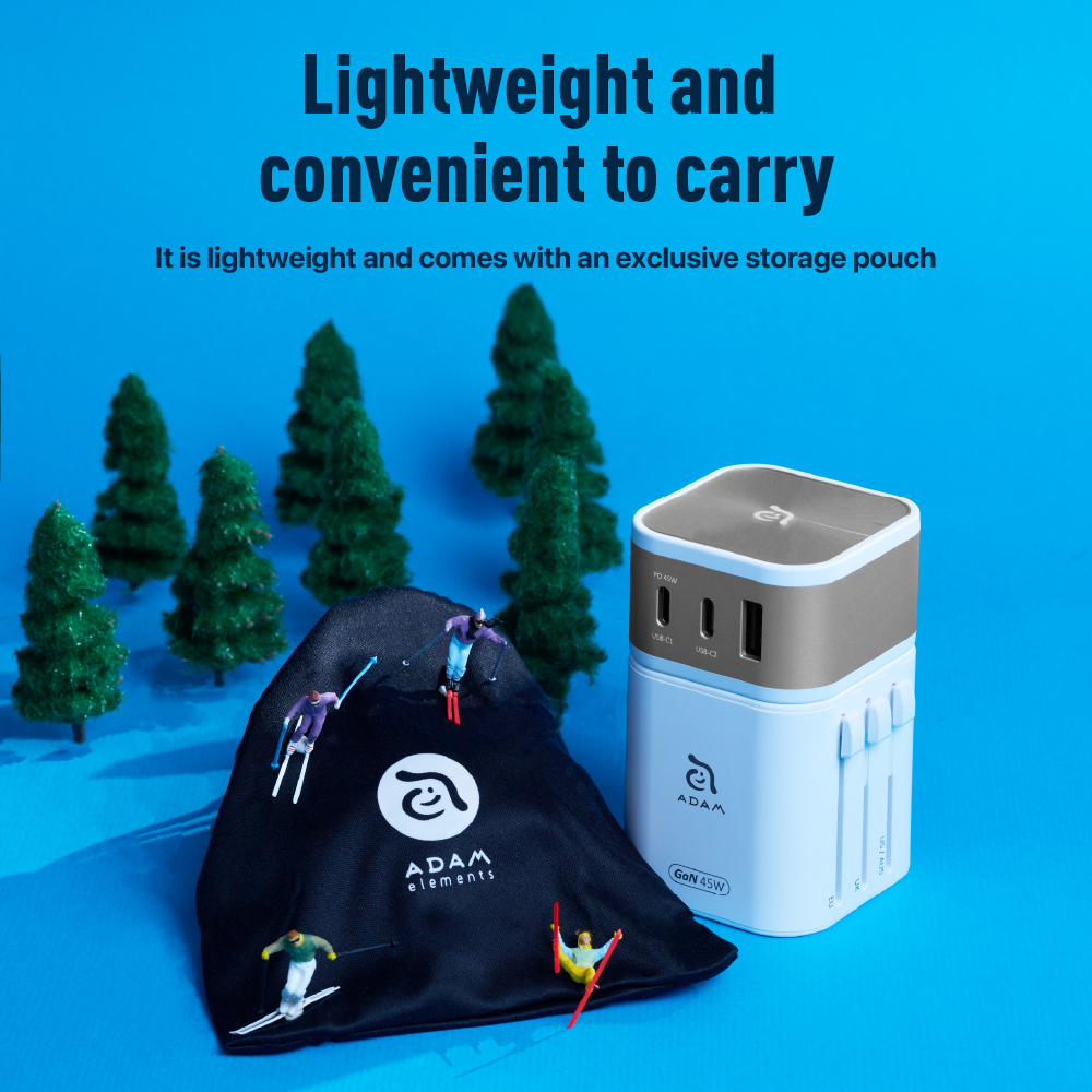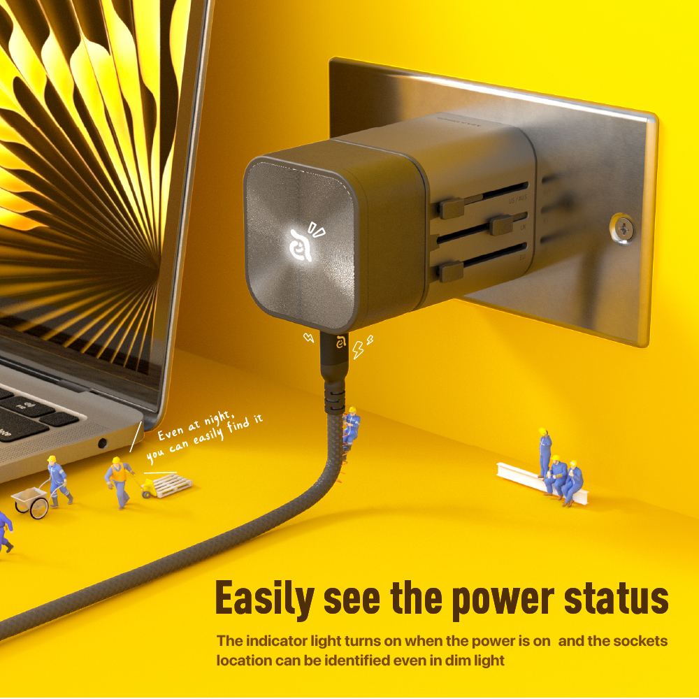 • Retractable multi-country plug with safety lock design to secure the plug and prevent it from retracting.