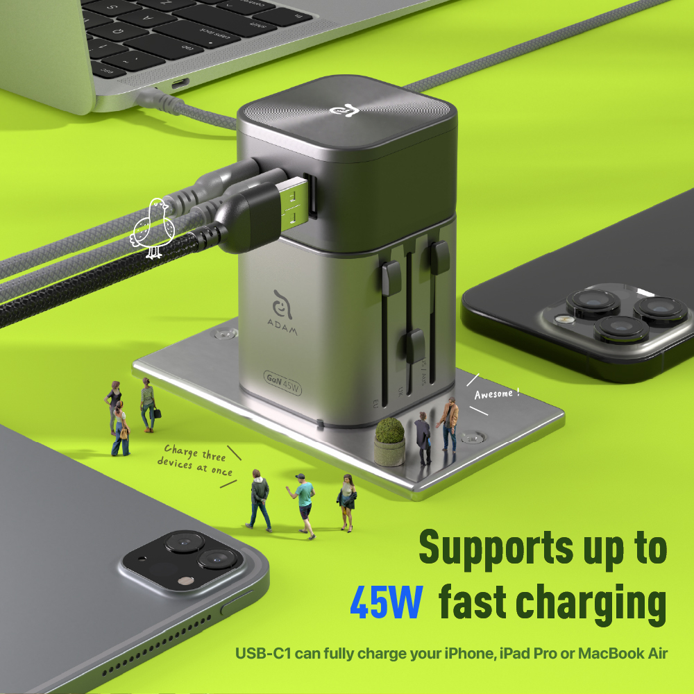 • USB-C1 (PD 3.0) supports fast charging up to 45W; even when all three ports are used  simultaneously, USB-C1 can still support      30W.