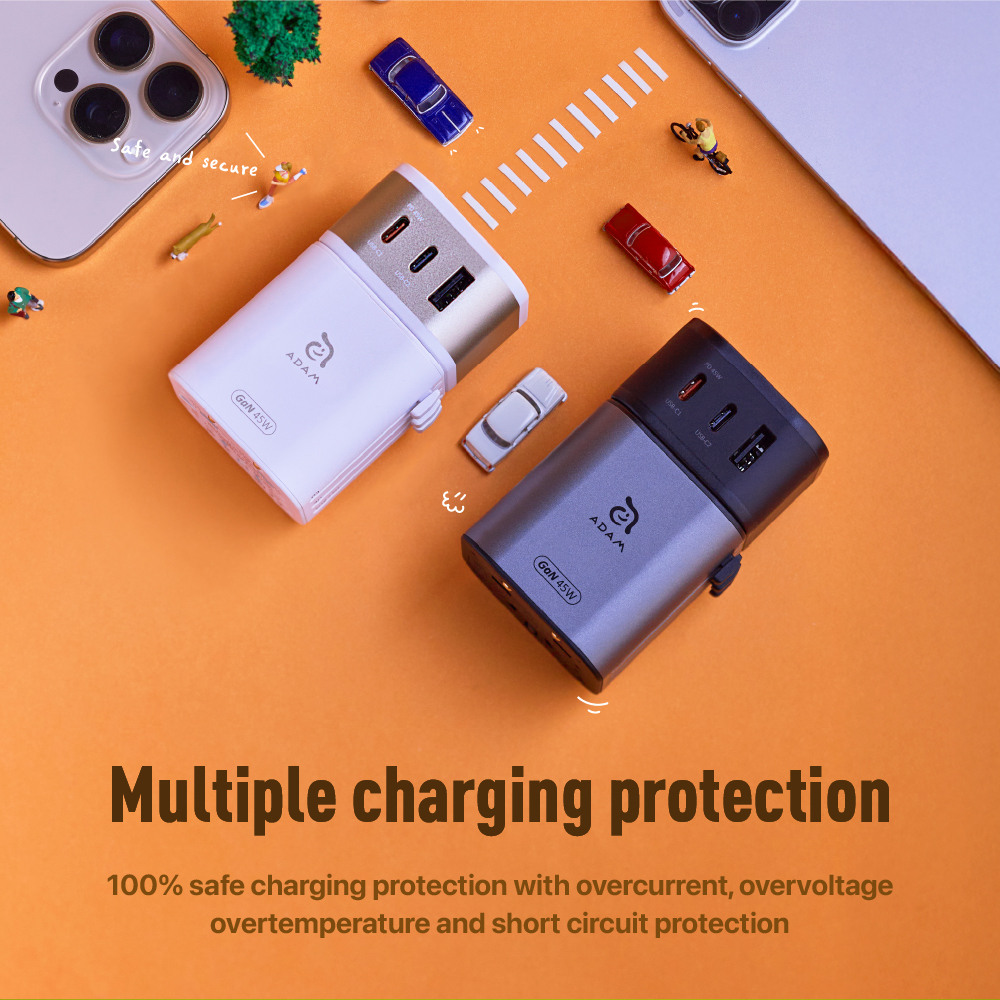 • 100% safe charging protection, featuring safeguards against overcurrent, overvoltage, overheating, and short circuits.