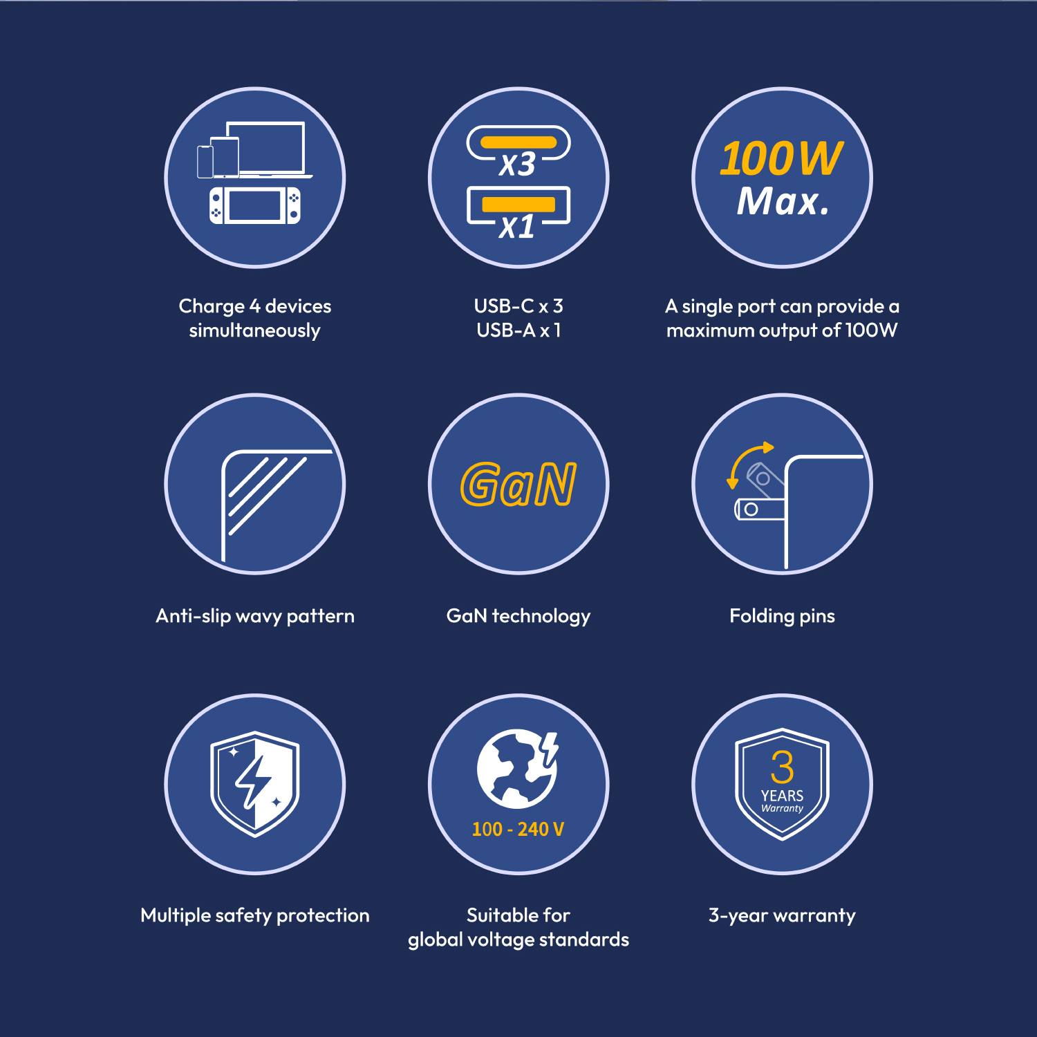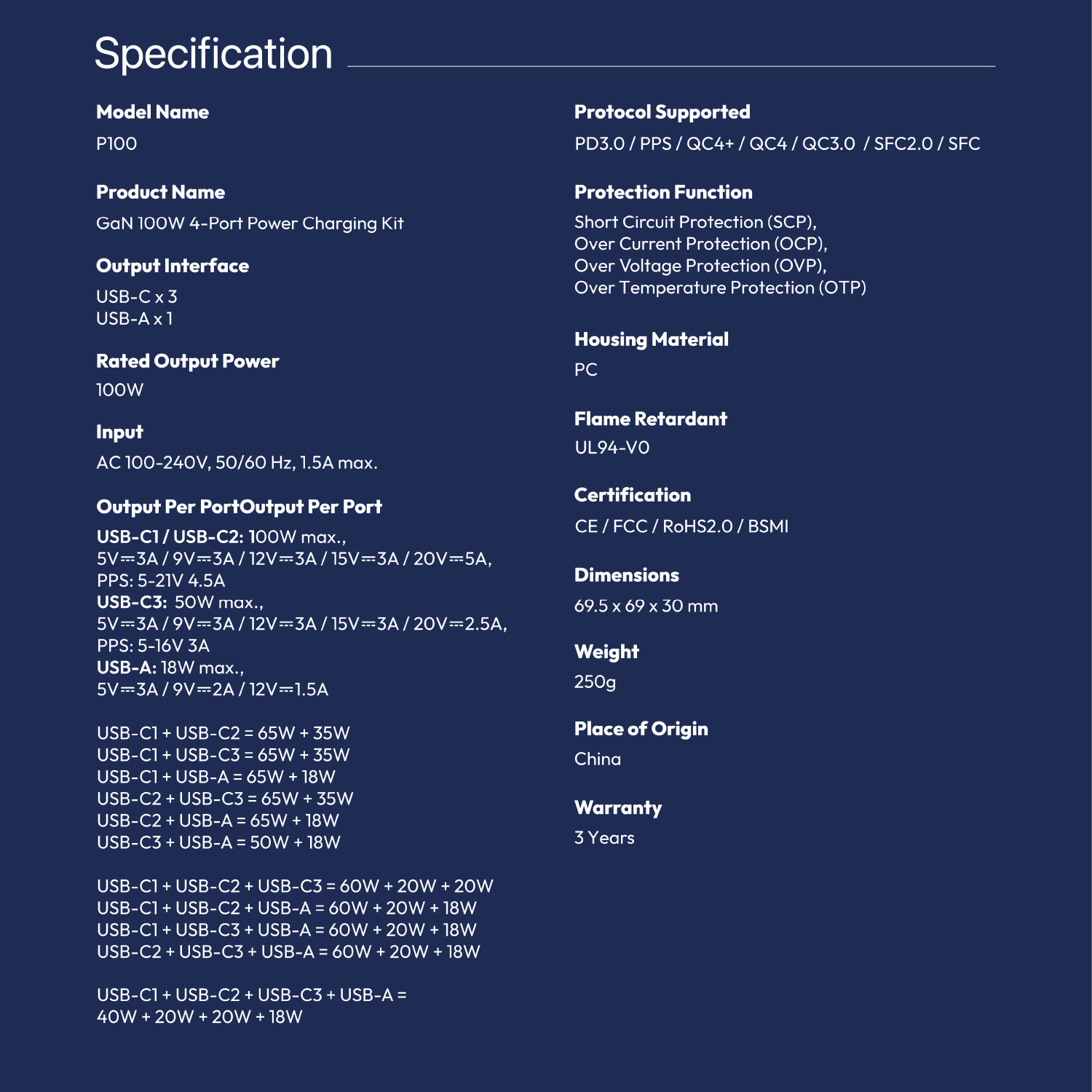• The first 100W universal fast-charging charger, no need to choose a port—quickly charge anytime for full power