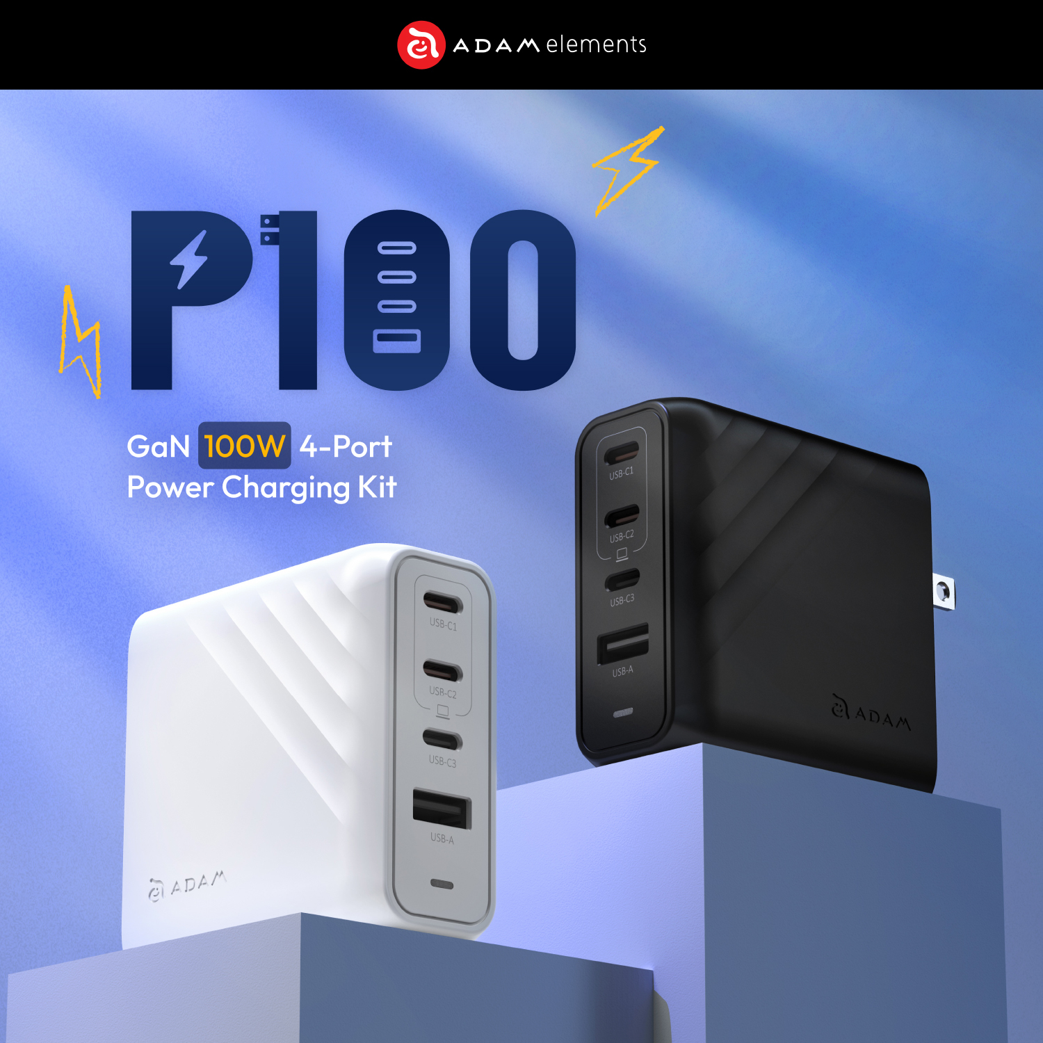 P100 GaN 100W 4-Port Power Charging Kit