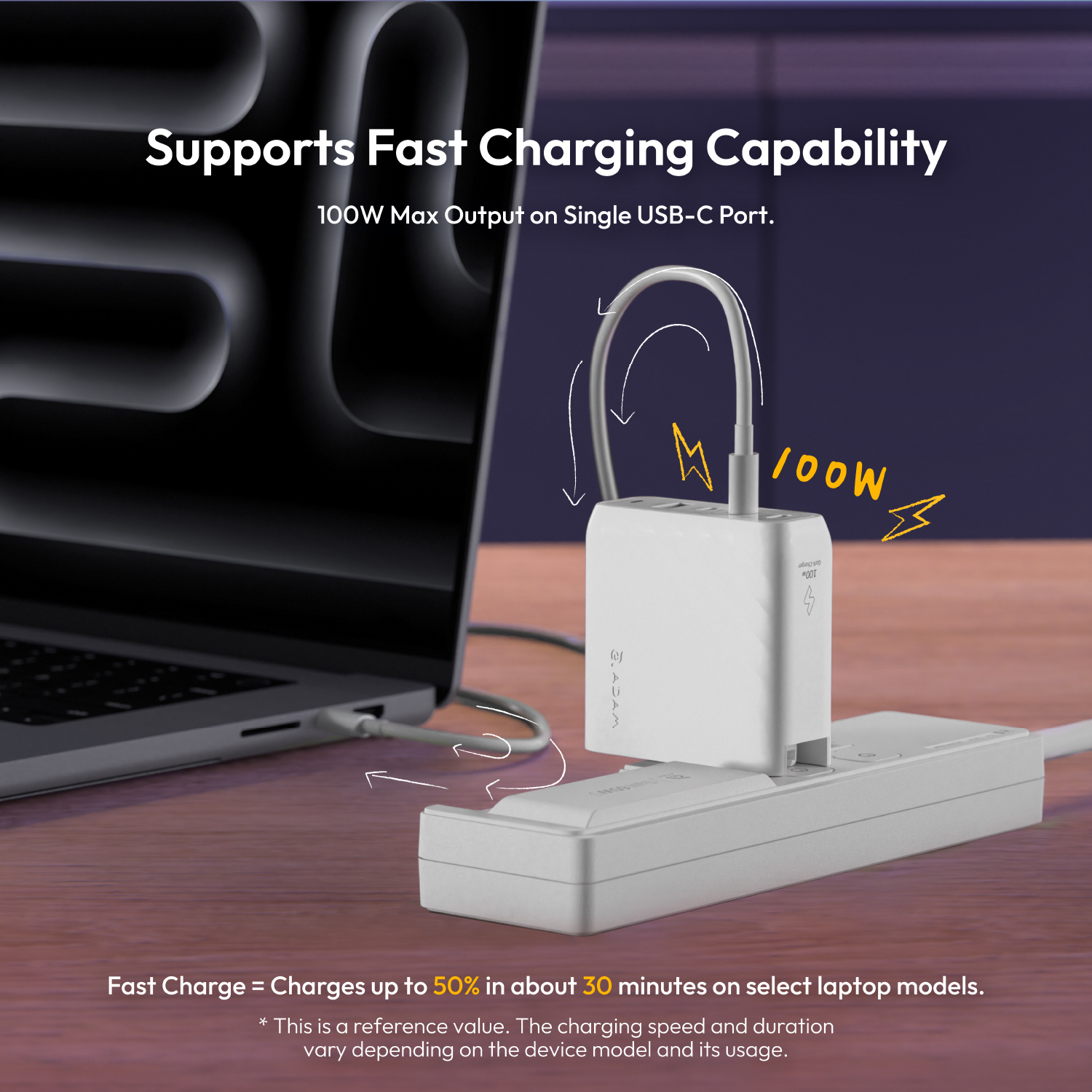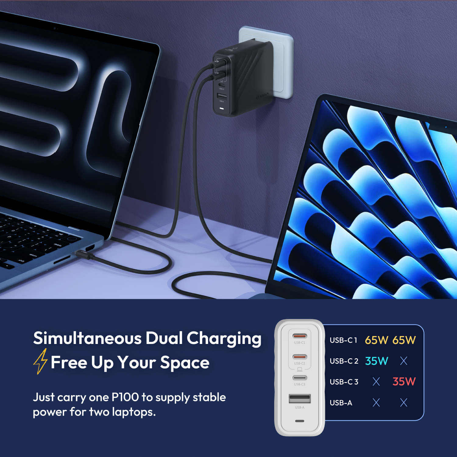 • The first 100W universal fast-charging charger, no need to choose a port—quickly charge anytime for full power