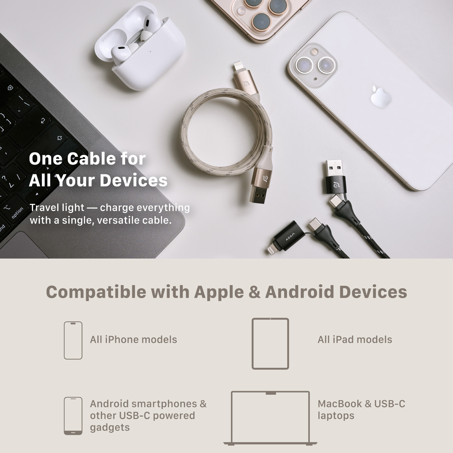 • Supports iPhone 15 (or later), Android devices, iPad Pro 11"/12.9" (2018 or later), iPad Air 4 (2020 or later), iPad 10 (2022 or later), iPad mini 6 (2021 or later), MacBook Air, MacBook Pro 13", and laptops (up to 60W).
