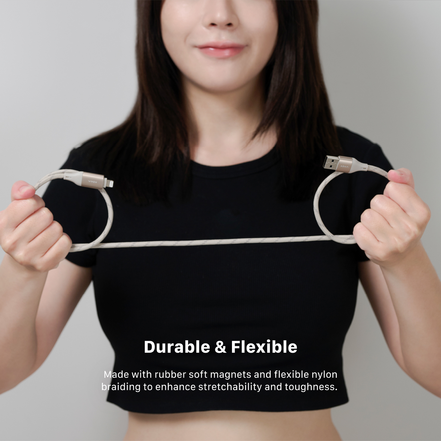 • Uses rubber soft magnets, enhancing cable flexibility, resilience, and extensibility, making it easy to store and straighten, with high moldability.