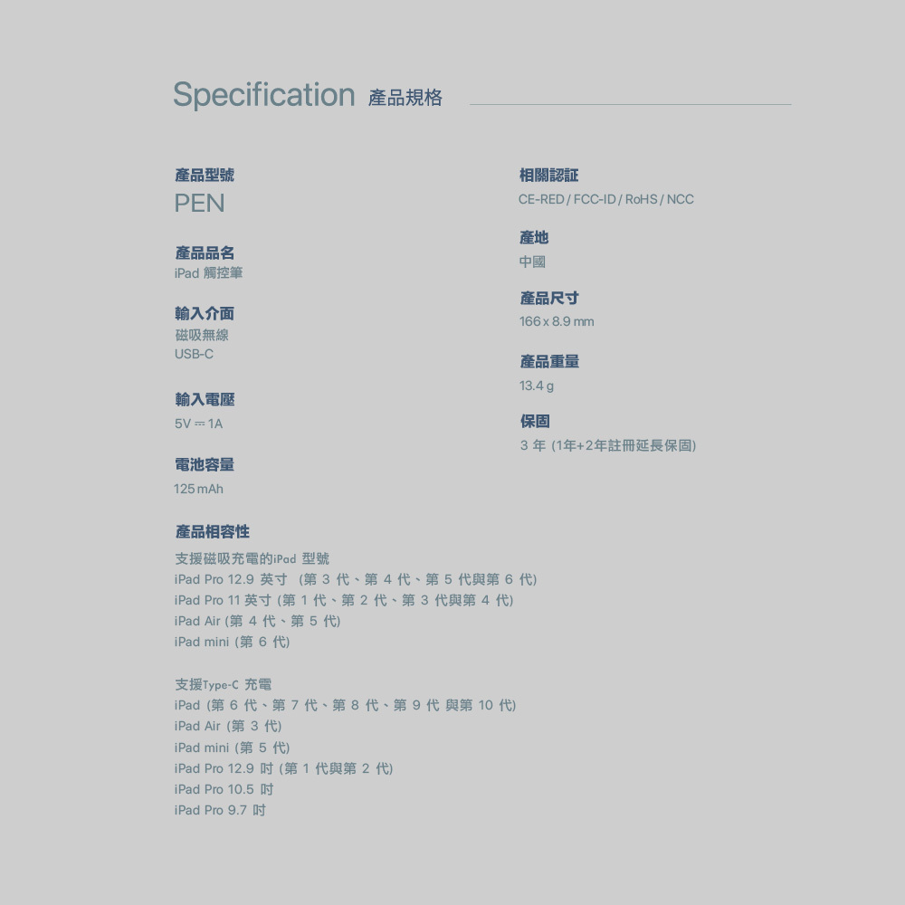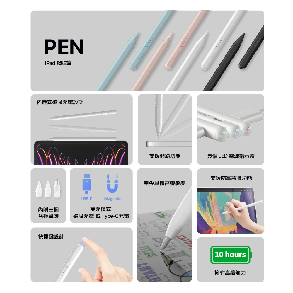 With a 13.4g featherweight, the PEN is lighter than the Apple Pencil. The built-in magnet allows the PEN to attach magnetically to your iPad for easy carrying and storage.