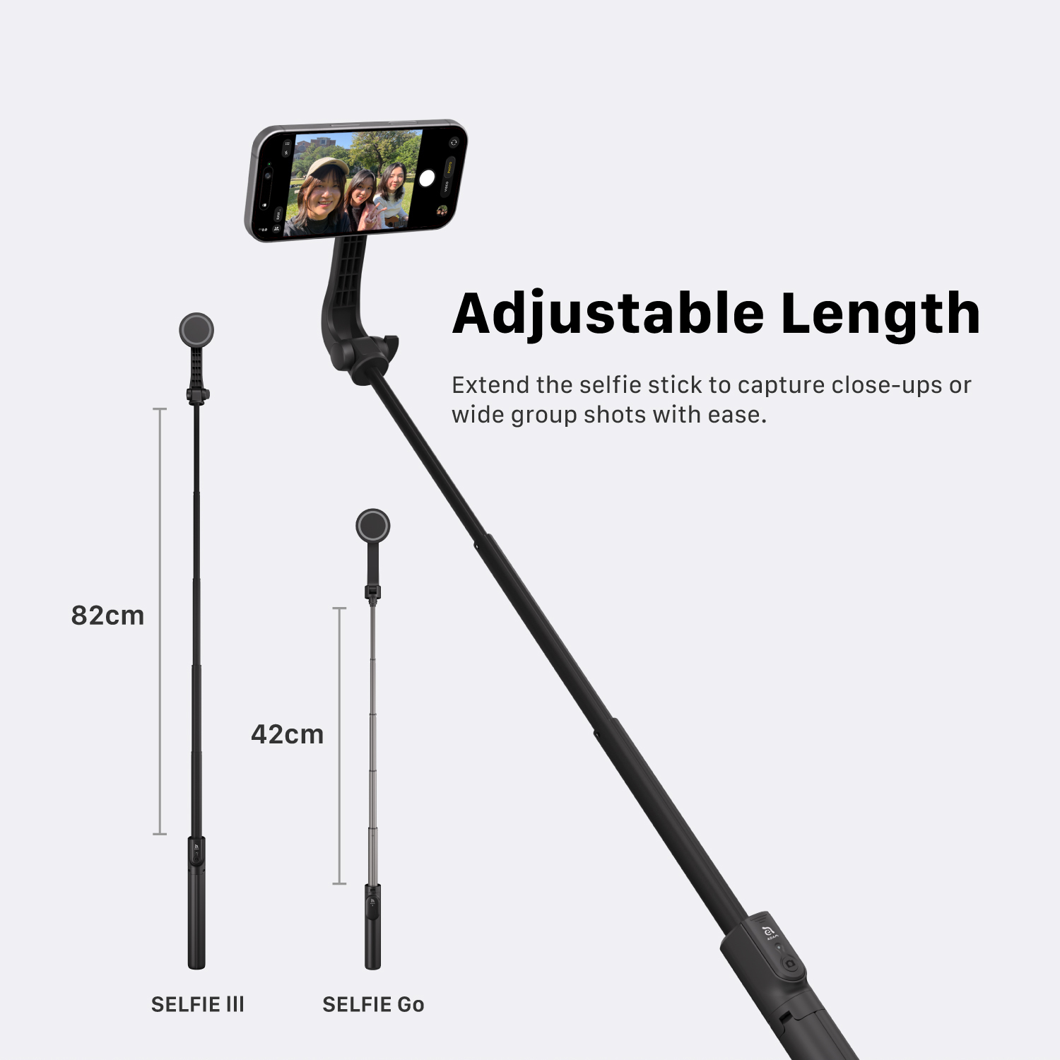 • Selfie stick collapses to 16.7cm, weighs 167g for easy portability, extends up to 64cm, perfect for small gatherings