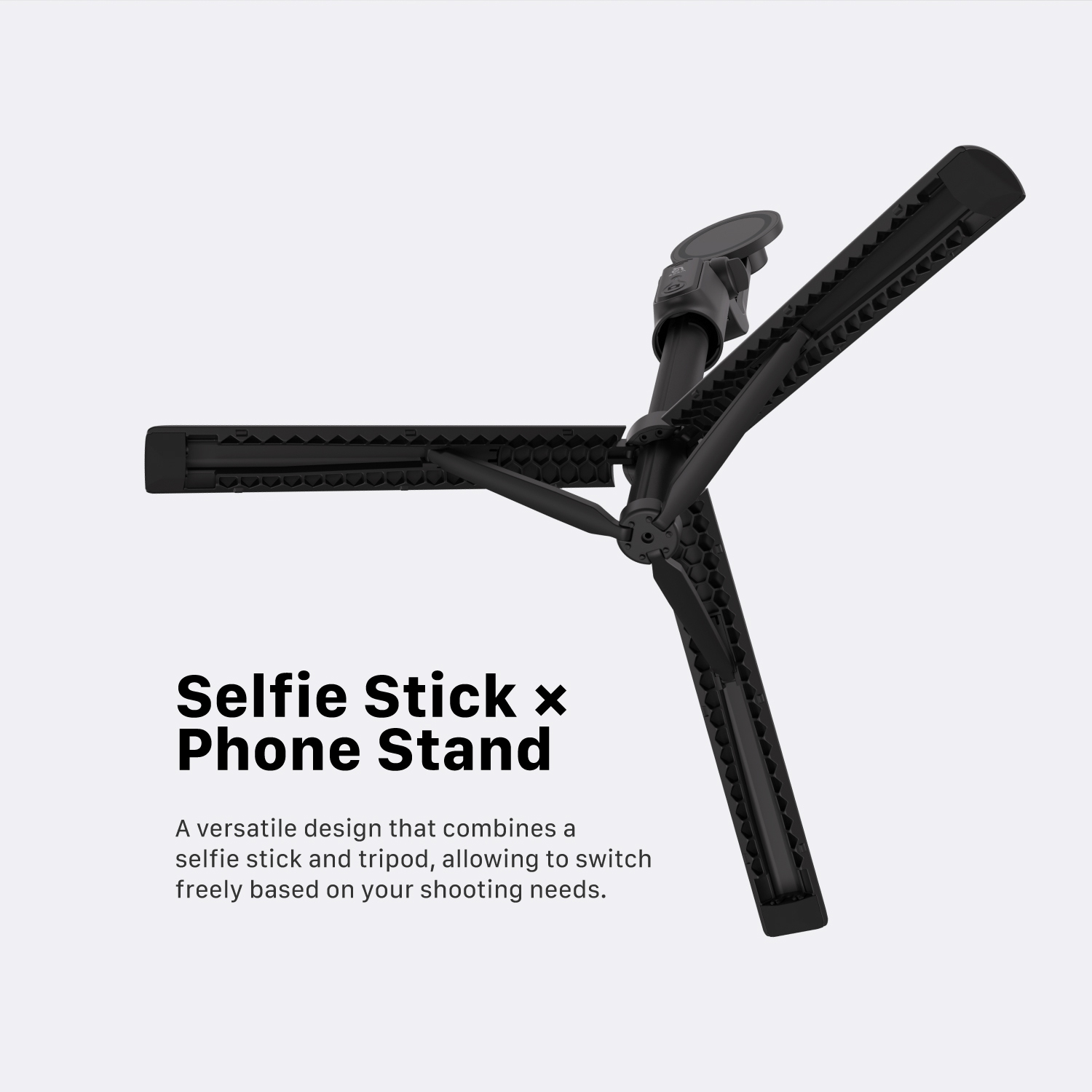 • Selfie stick seamlessly transforms into a tripod, offering flexibility for various shooting needs
