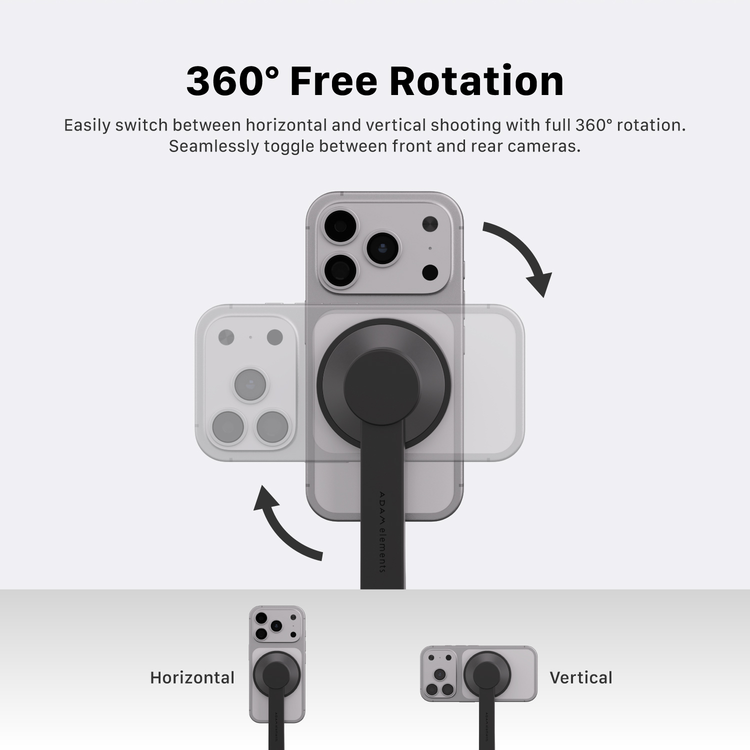 • Supports magnetic function and phone stand allows horizontal and vertical 360° rotation for flexible shooting