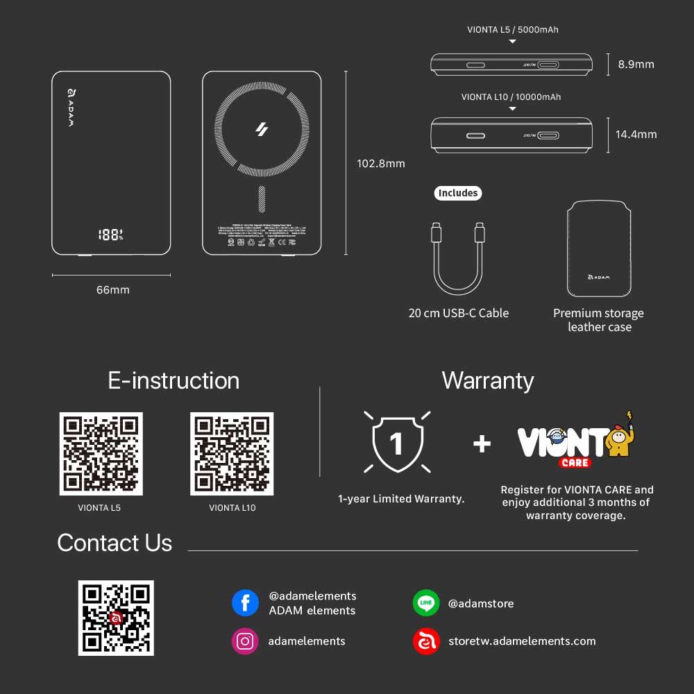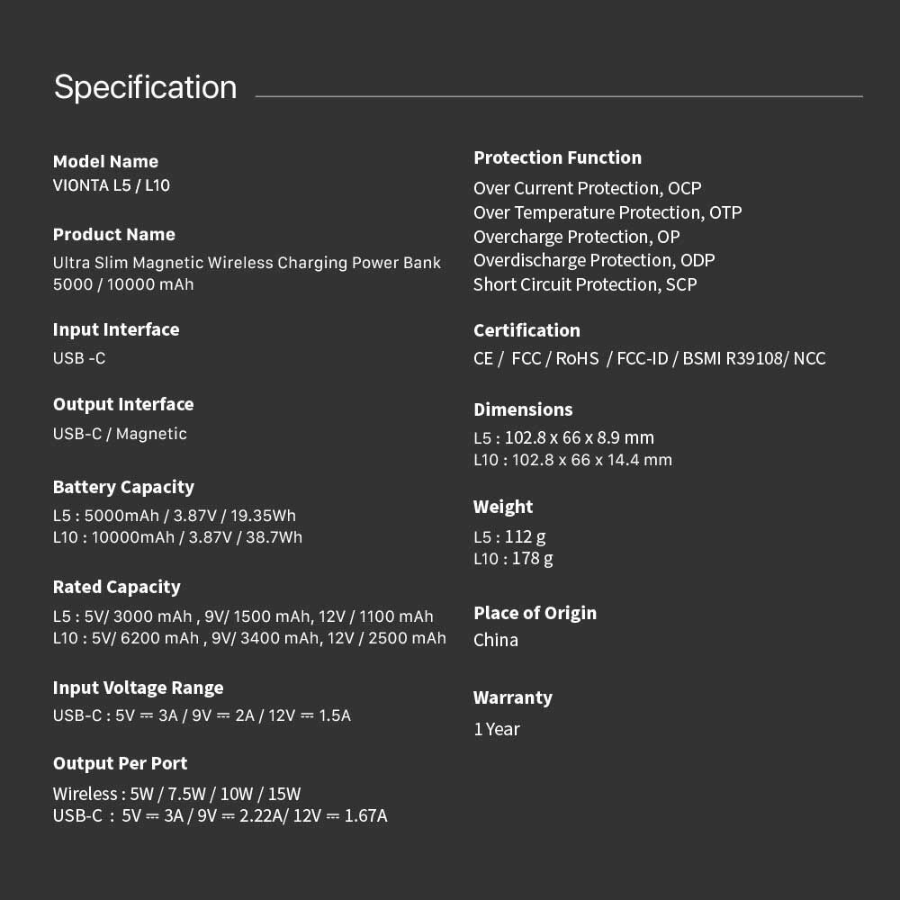 VIONTA L5 Ultra Slim Magnetic Wireless Charging Power Bank