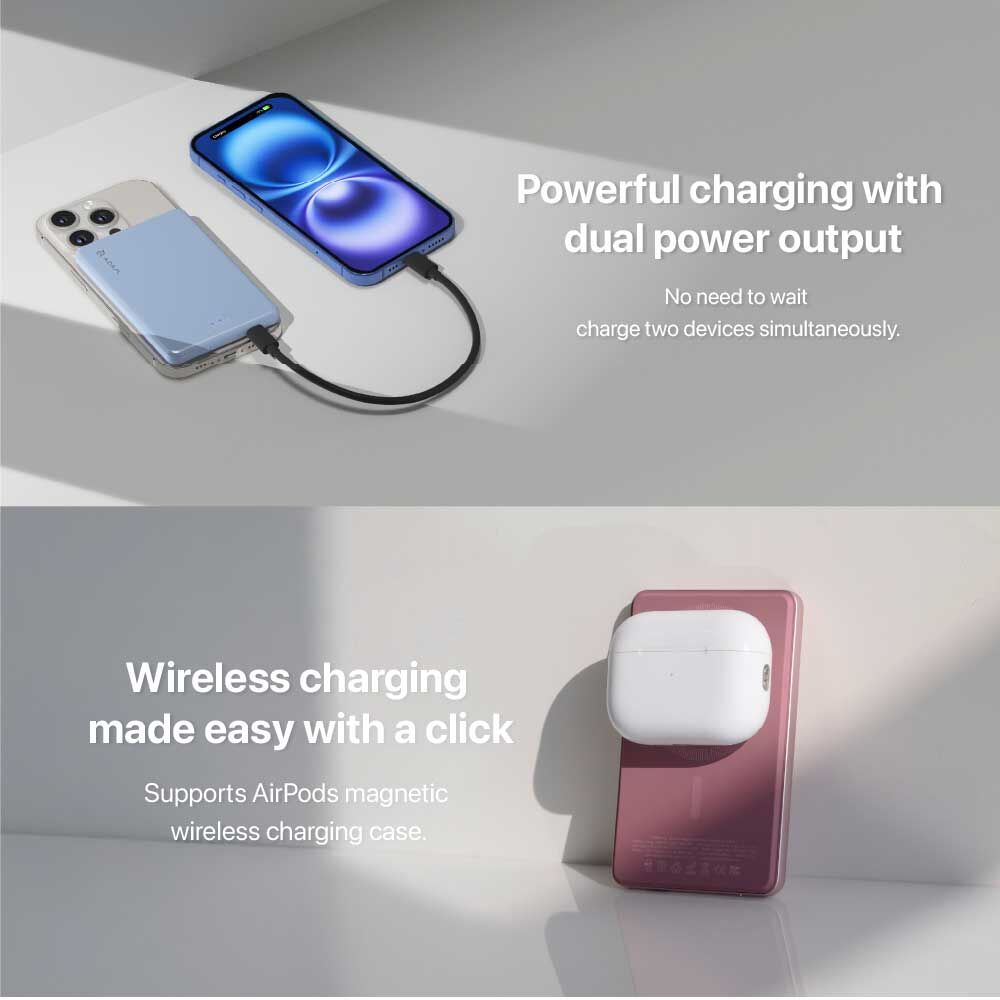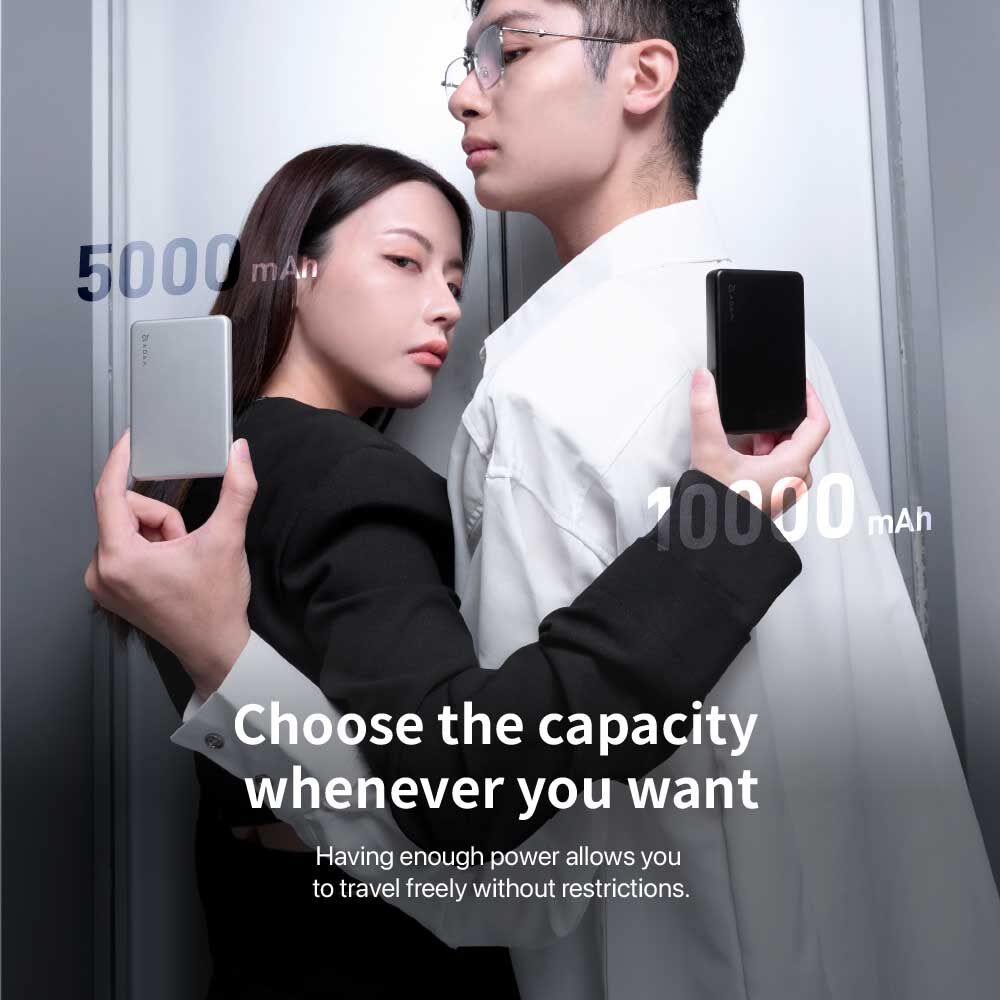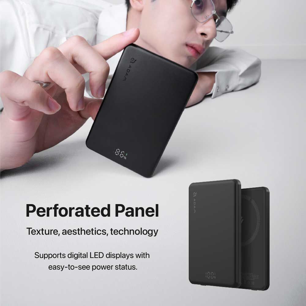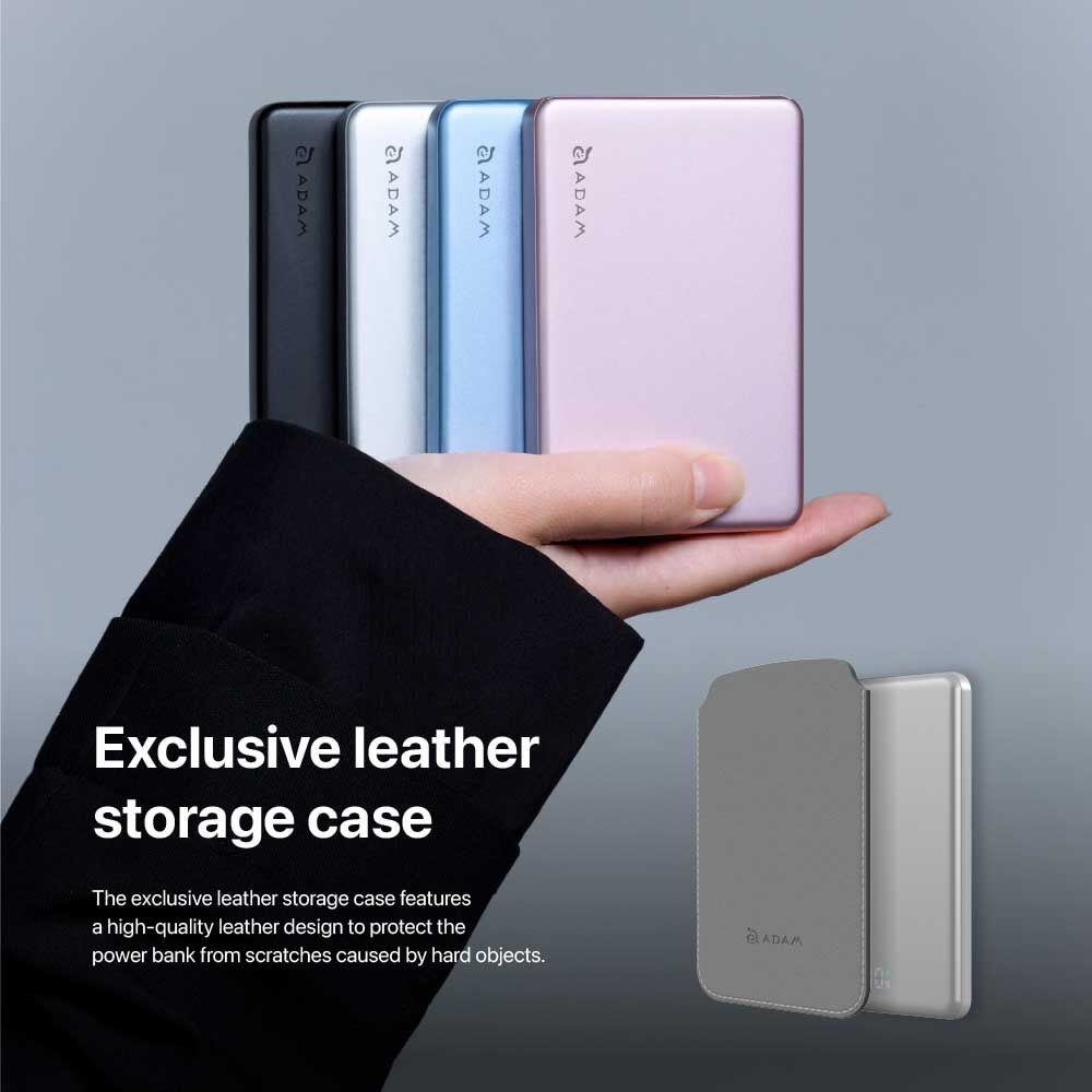• Features an ultra-compact size with a 5000mAh slim battery, making the power bank more portable.