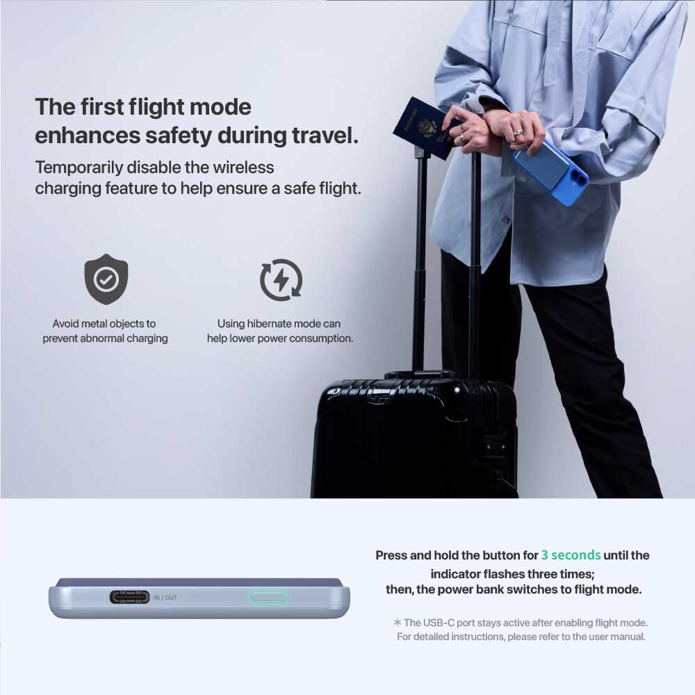 • The first-ever power bank with a flight mode, enhancing safety protection during travel and air travel.