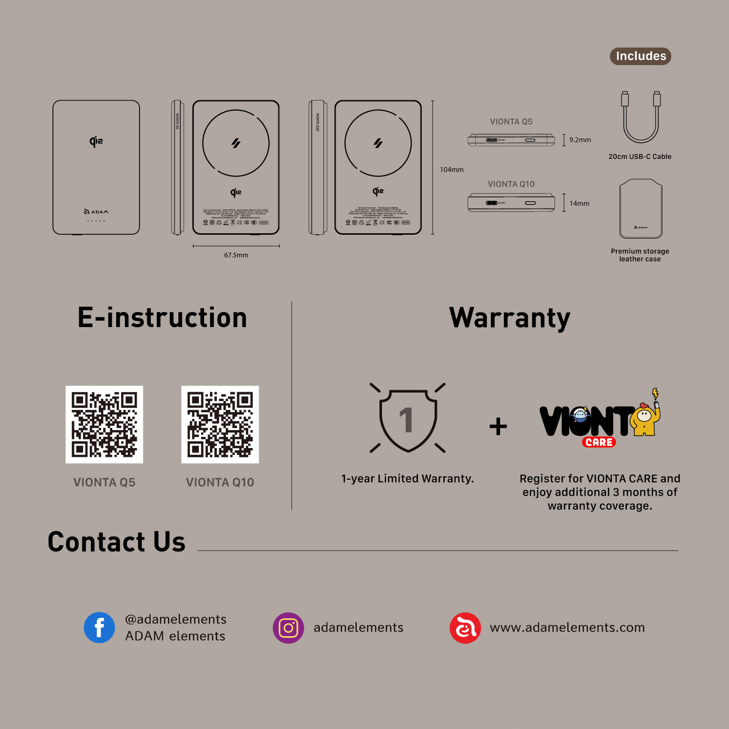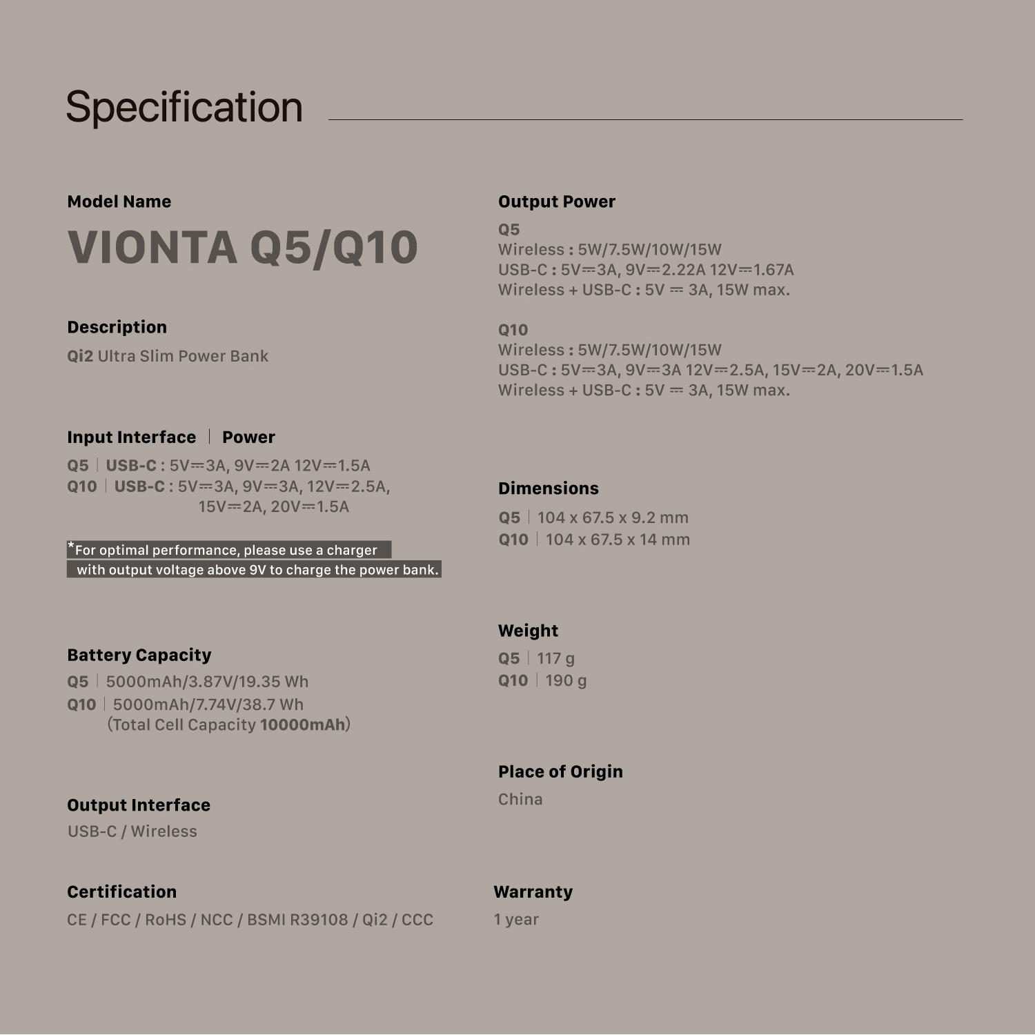 VIONTA Q5 Qi2 Ultra Slim Power Bank