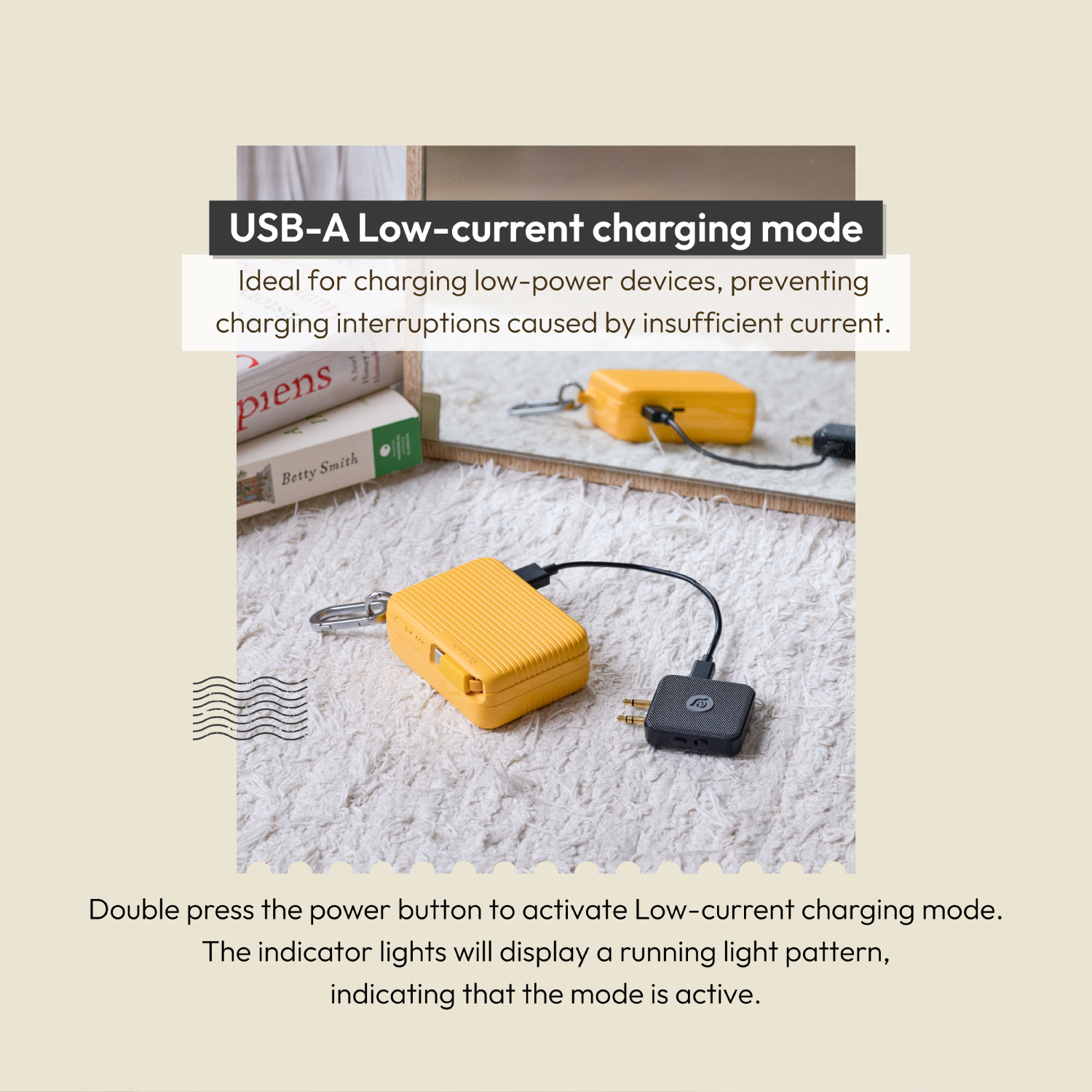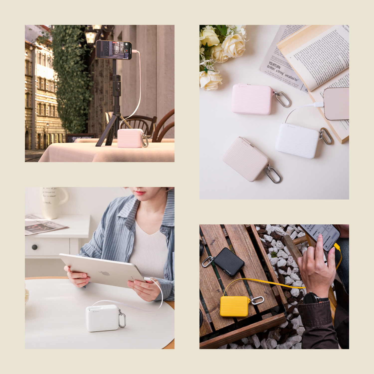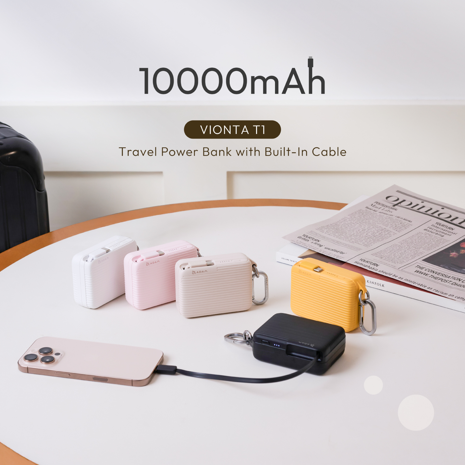 • Built-in 10000mAh power bank with a suitcase-inspired design, compact yet powerful