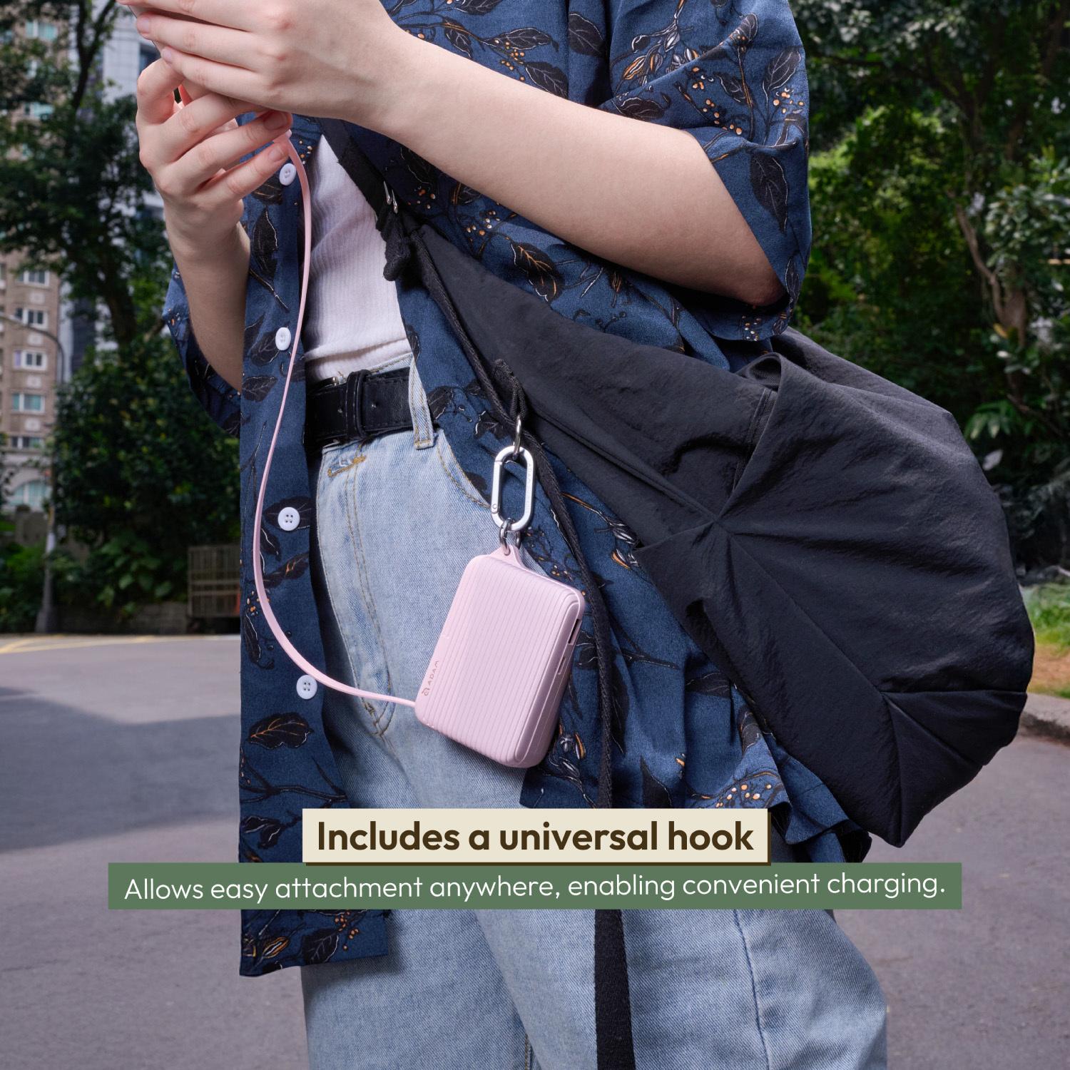 • Includes a universal hook for easy attachment anywhere, enabling quick and convenient charging