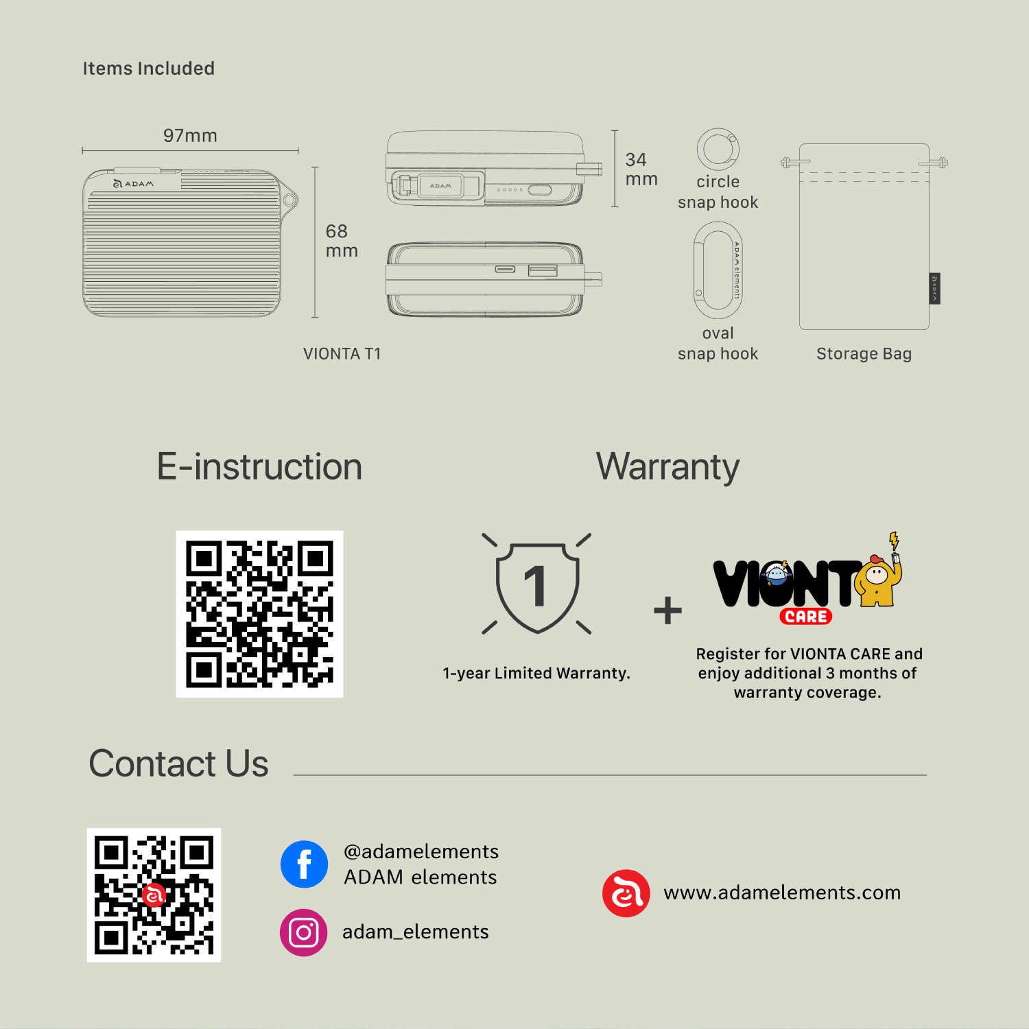 VIONTA T1 10,000mAh Travel Power Bank with Built-In Cable + EVE II Bluetooth Transmitter & Receiver