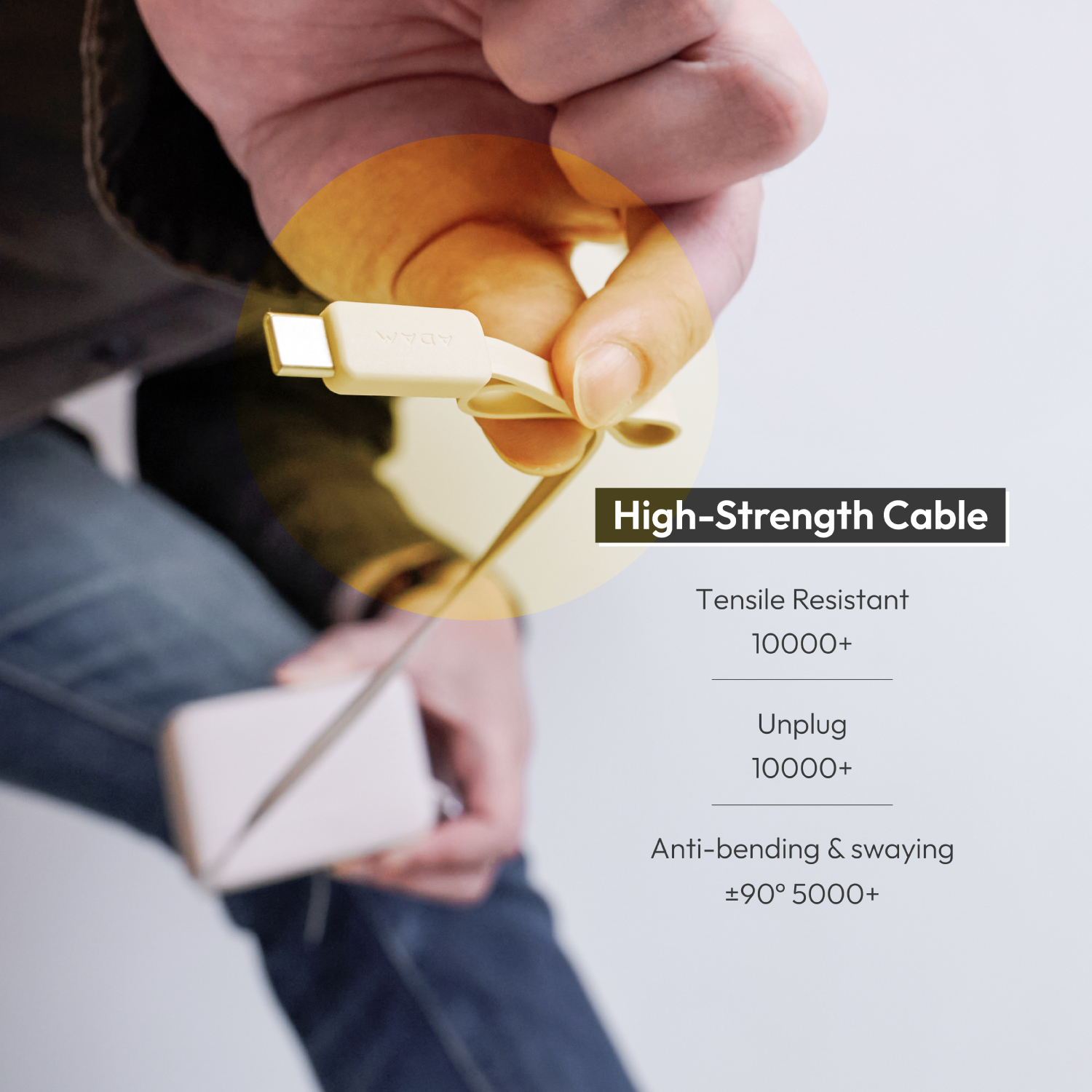 • Hidden retractable USB-C cable, extending up to 70cm, neatly stored within the power bank